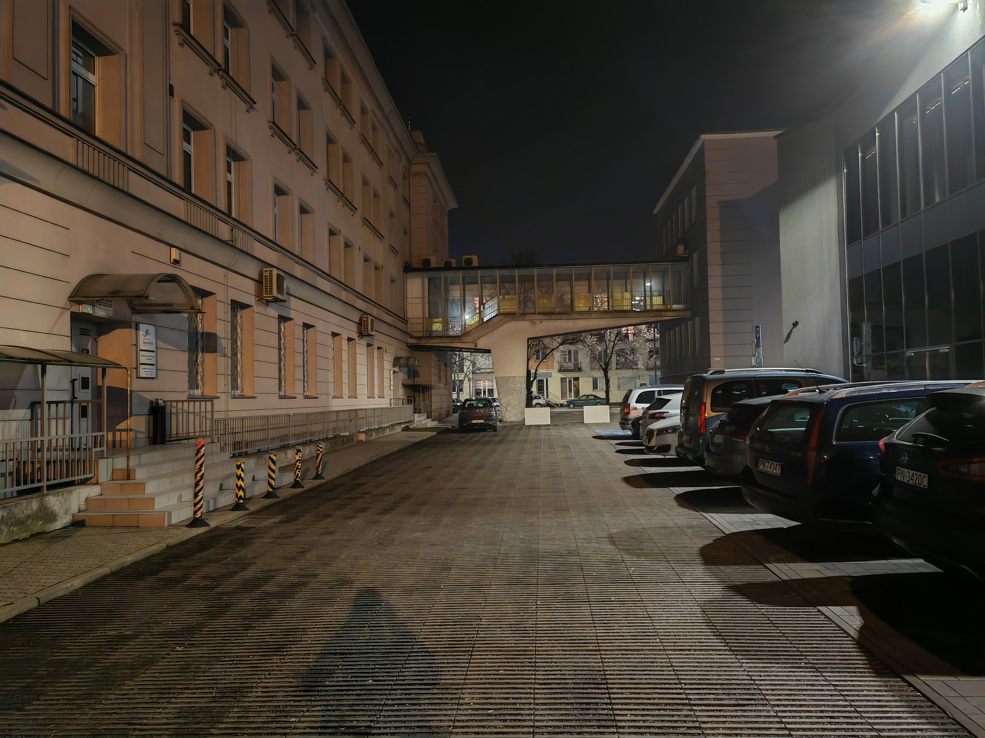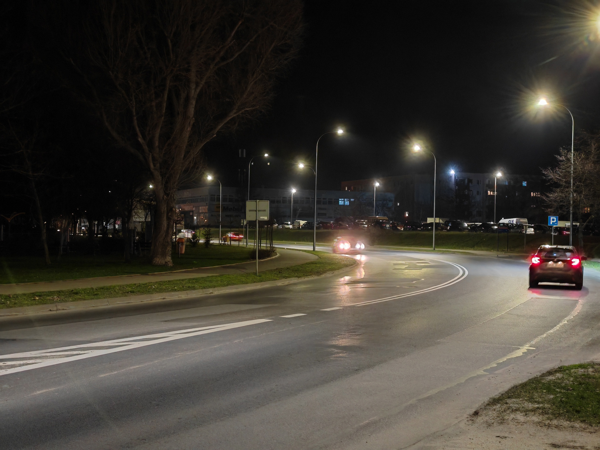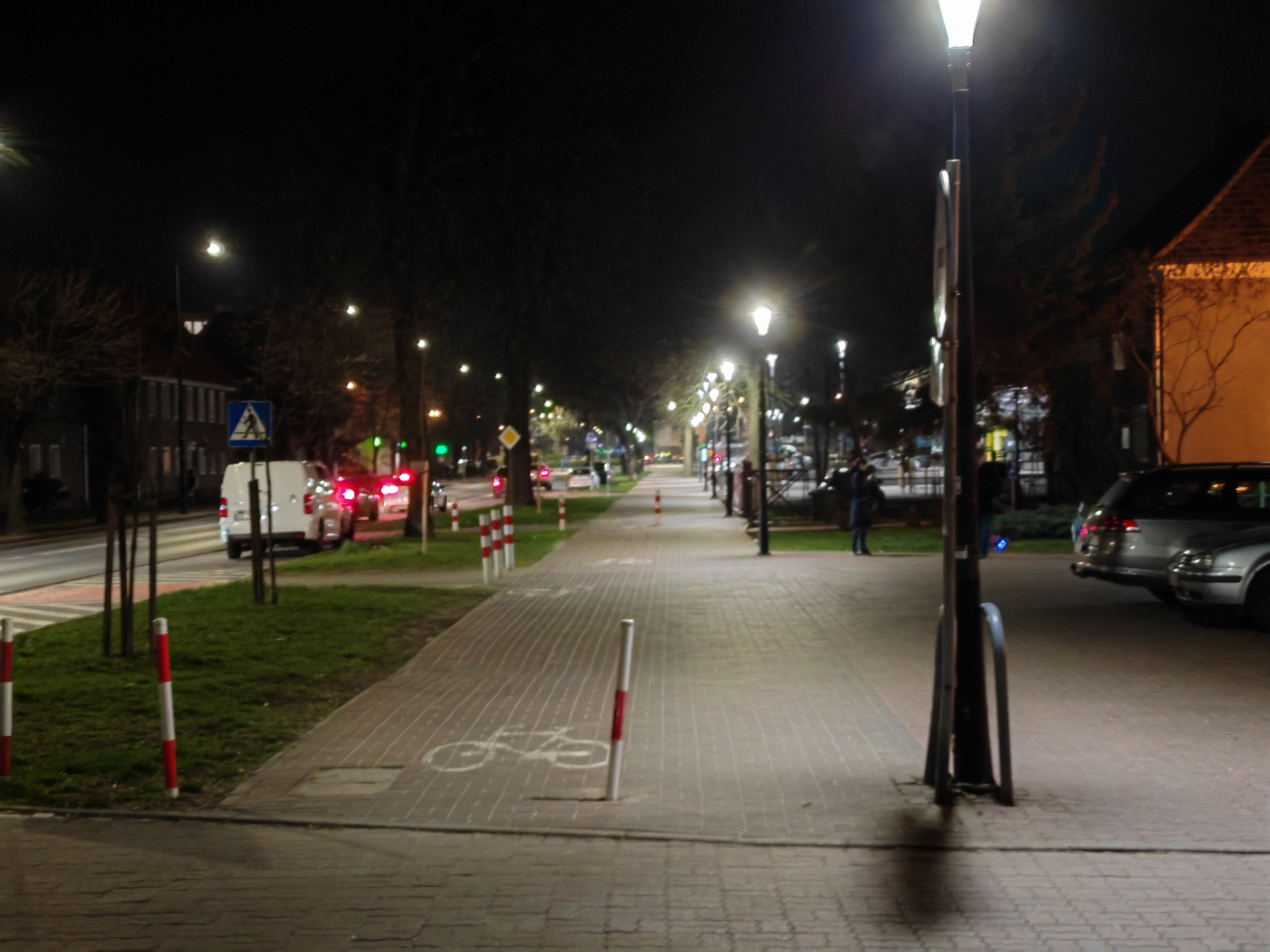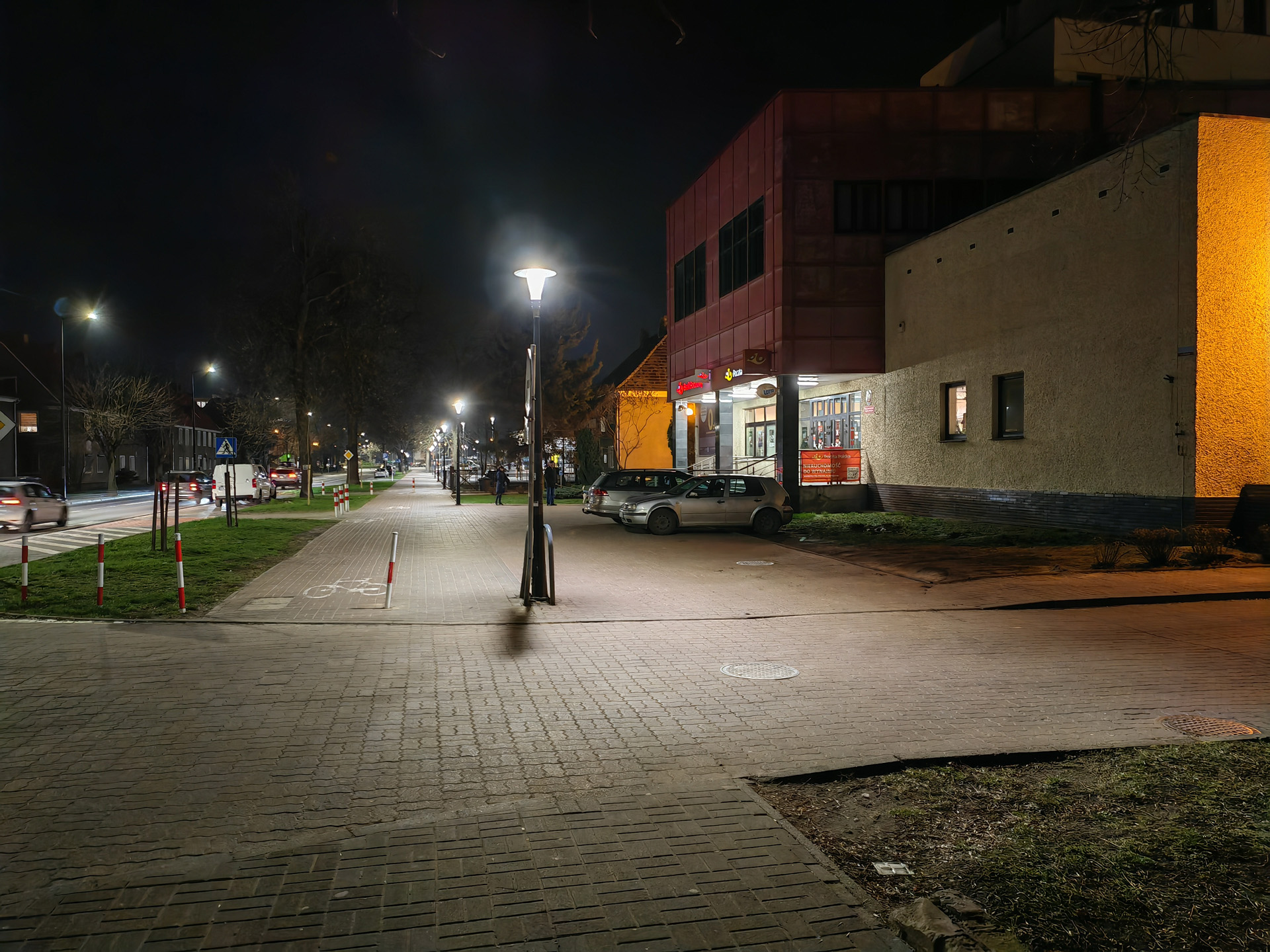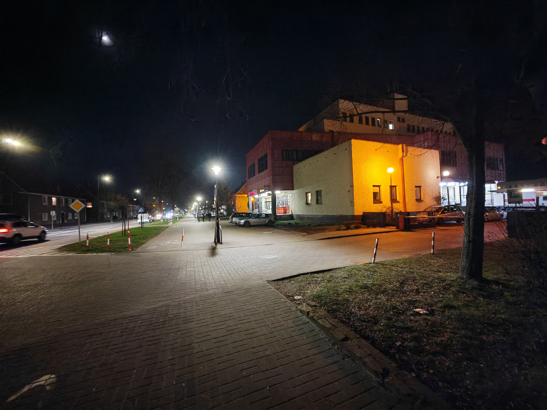 Honor Magic V2 radzi sobie nieźle także w nocy, ale tu różnice między aparatami są już znacznie większe. Najlepiej wypada oczywiście aparat główny, który wykonuje zdjęcia z niewielkimi flarami, pozbawione większych artefaktów i szczegółowe. Pozbawiony stabilizacji aparat ultraszerokokątny wypada słabiej, artefaktów i szumu jest więcej, a szczegółowość spada tym bardziej, im mniej jest światła. Aparat tele przy odpowiedniej ilości światła radzi sobie znośnie, lecz ciemniejsze kadry są złej jakości. Zbliżenia ×10 są na ogół bezużyteczne.