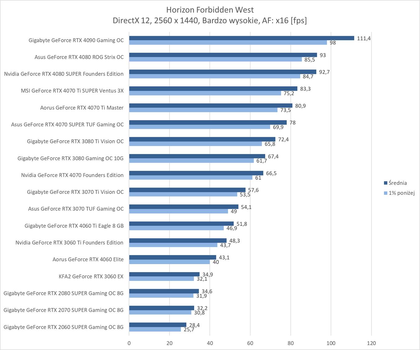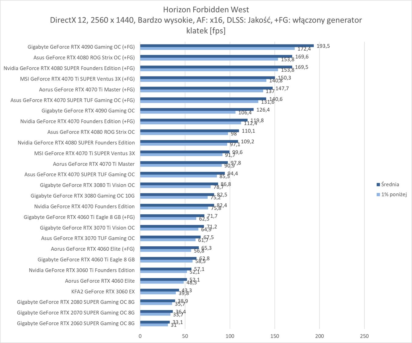 Test kart graficznych Nvidia w Horizon Forbidden West – podsumowanie