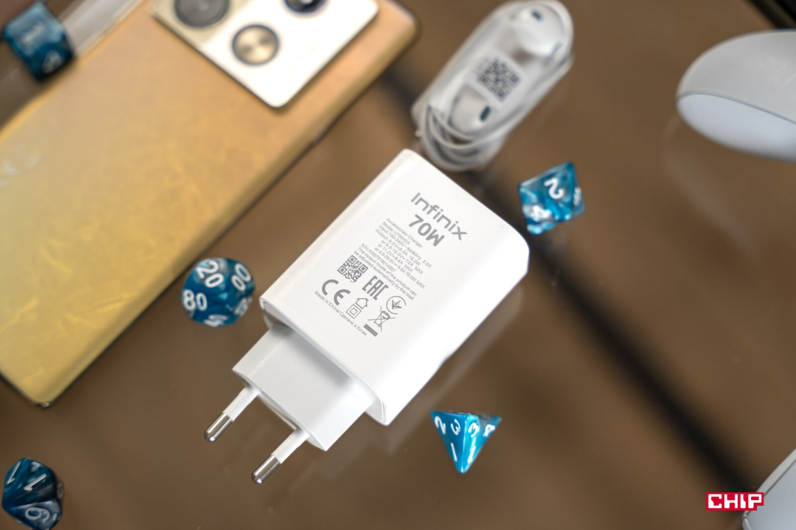 W nowym smartfonie Infinix Note 40 Pro znajdziemy obsługę szybkiego ładowania o mocy 70 W, przy użyciu ładowarki, która znajduje się w zestawie. To wystarczająca moc do tego, aby urządzenie było dosłownie gotowe do wyjścia z domu, zanim sami zdążymy się przygotować.