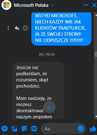Jakby tego było mało, pomoc techniczna Microsoftu prawdopodobnie korzysta z translatora i odpowiedzi na wiadomości mogą wyglądać niemal jak groźby.