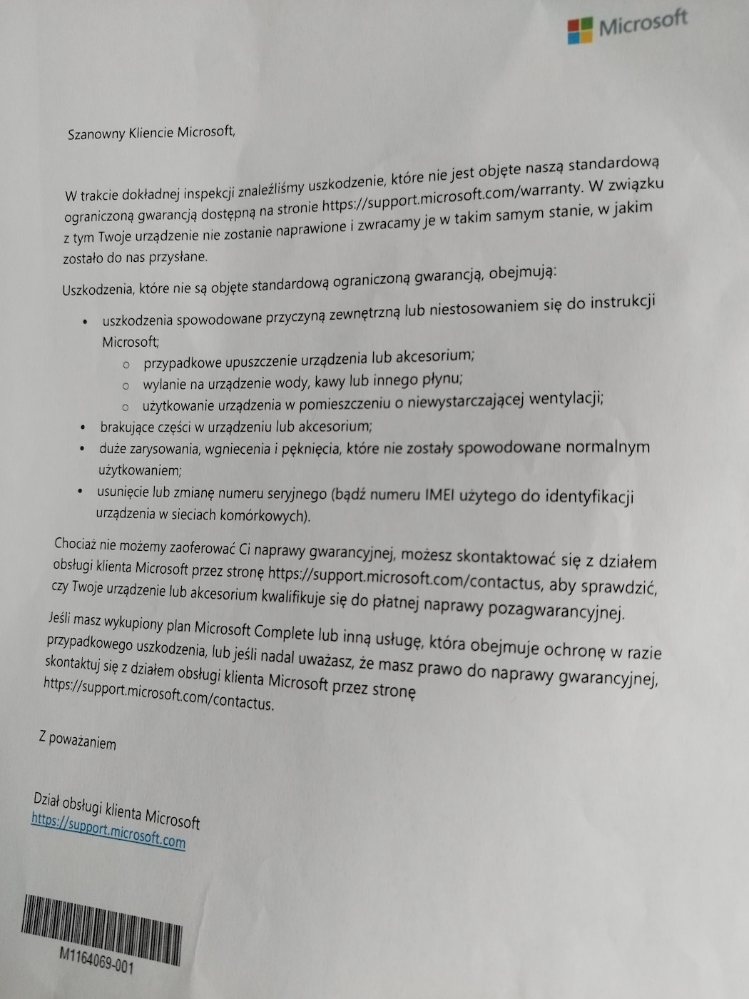 Serwis Microsoft laptopa nie naprawił, ale poradził sobie z gwarancją