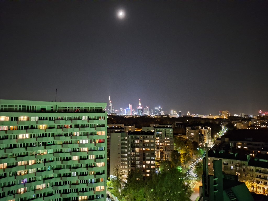A jak sytuacja wygląda nocą? Samsung Galaxy A35 5G ma nienachalny tryb nocny. Nie wzbudza on mojej nadmiernej ekscytacji, bo nadal nie ma zbyt dużej szczegółowości w kadrach, ale skutecznie rozjaśnia kadr bez generowania nienaturalnych kolorów. Niestety, źródła światła dość znacznie rozchodzą się po kadrze. Poza tym widoczne są znaczne szumy, które może nie psują kadru, ale z pewnością zabierają mu sporo uroku. Aparat ultraszerokokątny zyskuje dzięki trybowi nocnemu sporo na jasności, jednak nadal prezentuje niską jakość zdjęć. Ostatecznie zdjęcia nocne nie robią na mnie wrażenia, ale są akceptowalne.