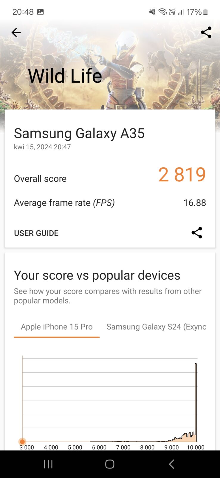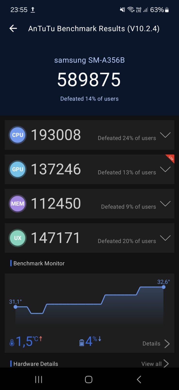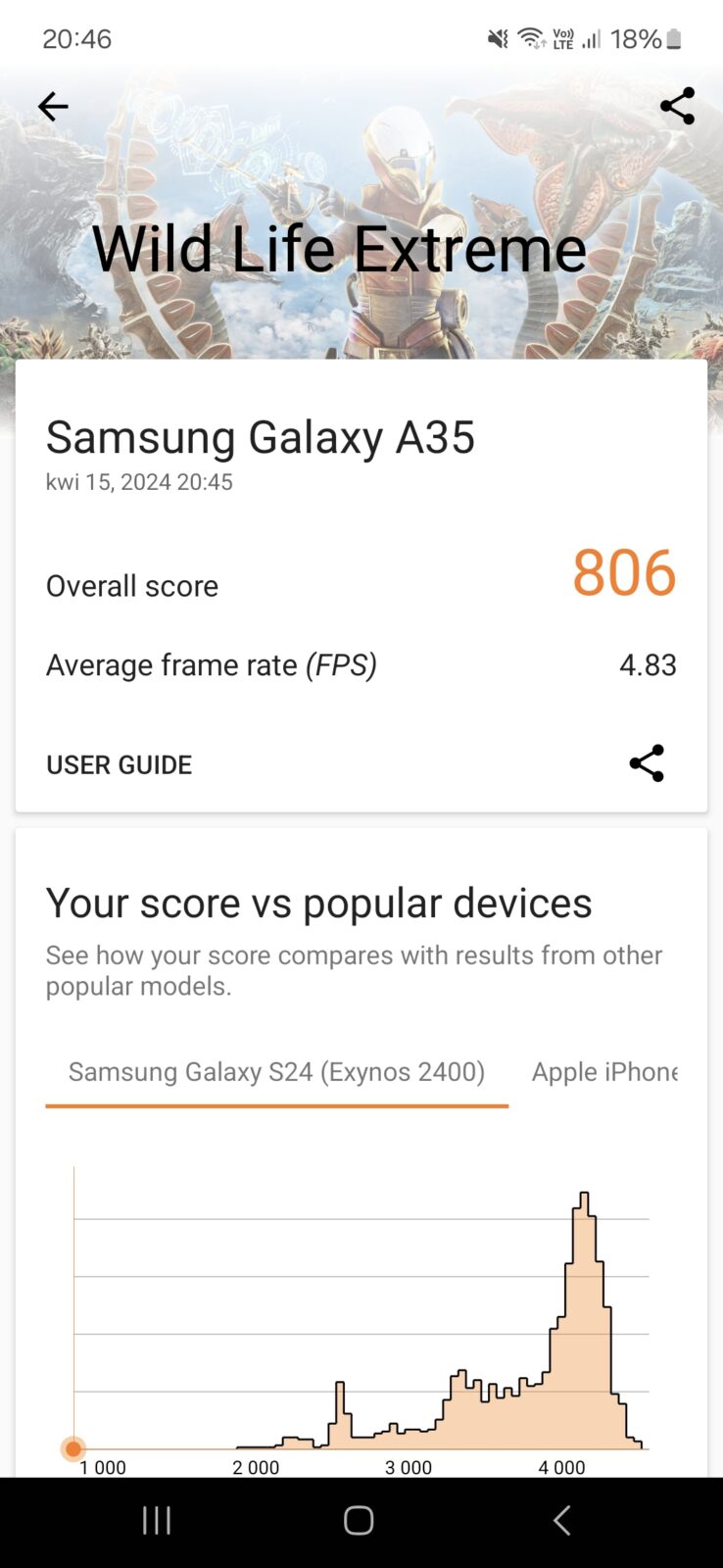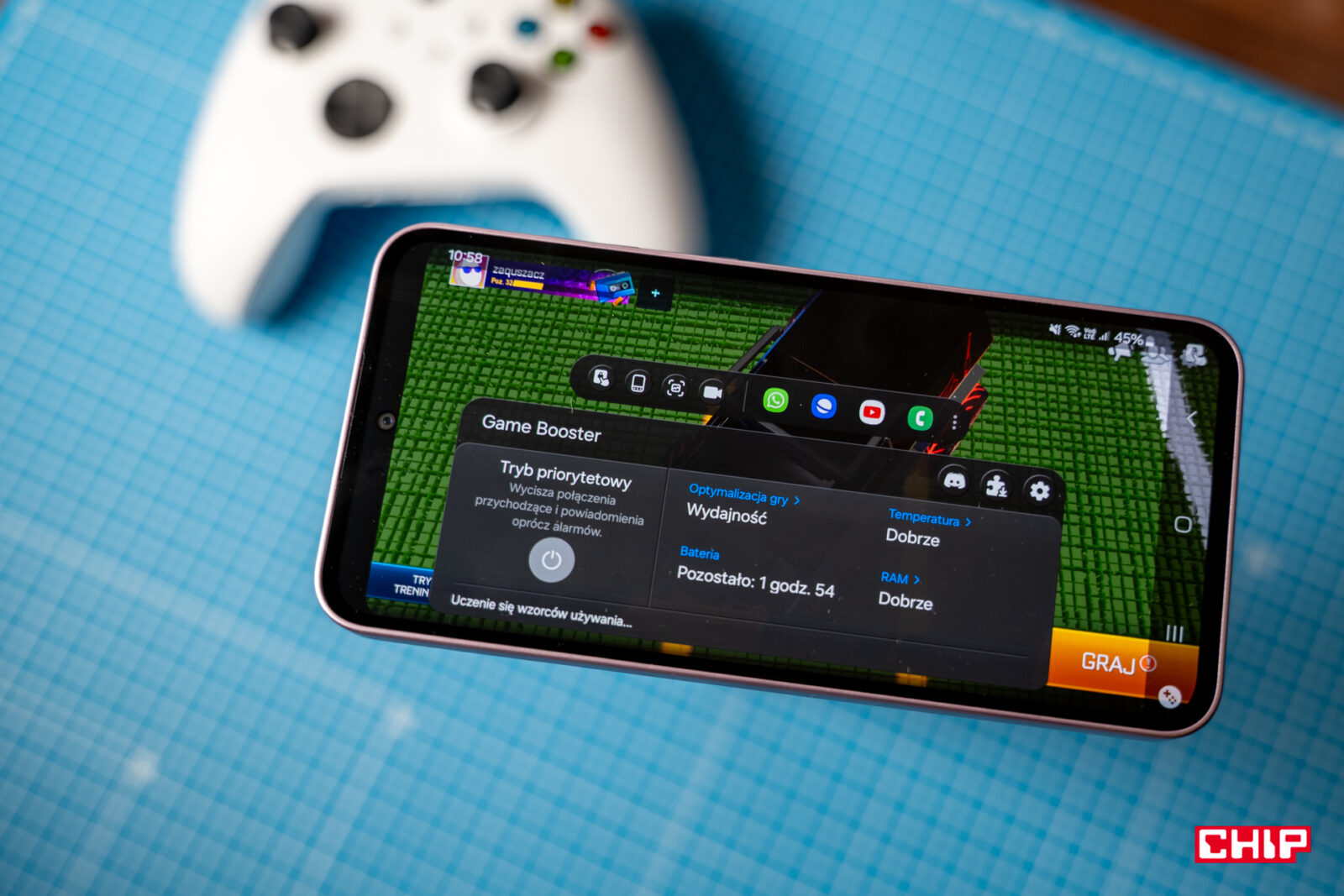 Czy Samsung Galaxy A35 5G to sprzęt do gier? Nie powiedziałbym. O ile Exynos 1380 jest całkiem wydajną jednostką, ale też potrafi się odczuwalnie nagrzać niemal od razu po uruchomieniu gier. Nie jest to poziom najgorszych Exynosów i nie wzbudza większego dyskomfortu przy dłuższych sesjach, ale pojawia się throttling przy najbardziej wymagających grach na najwyższych detalach. Lepiej zdecydować się na średnie ustawienia graficzne albo po prostu na wydajniejszą opcję z bardziej rozbudowanymi narzędziami dla gier.