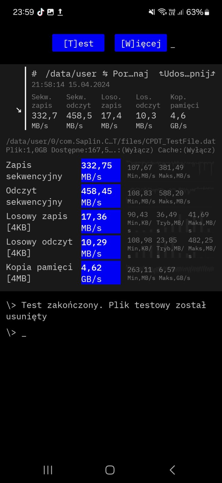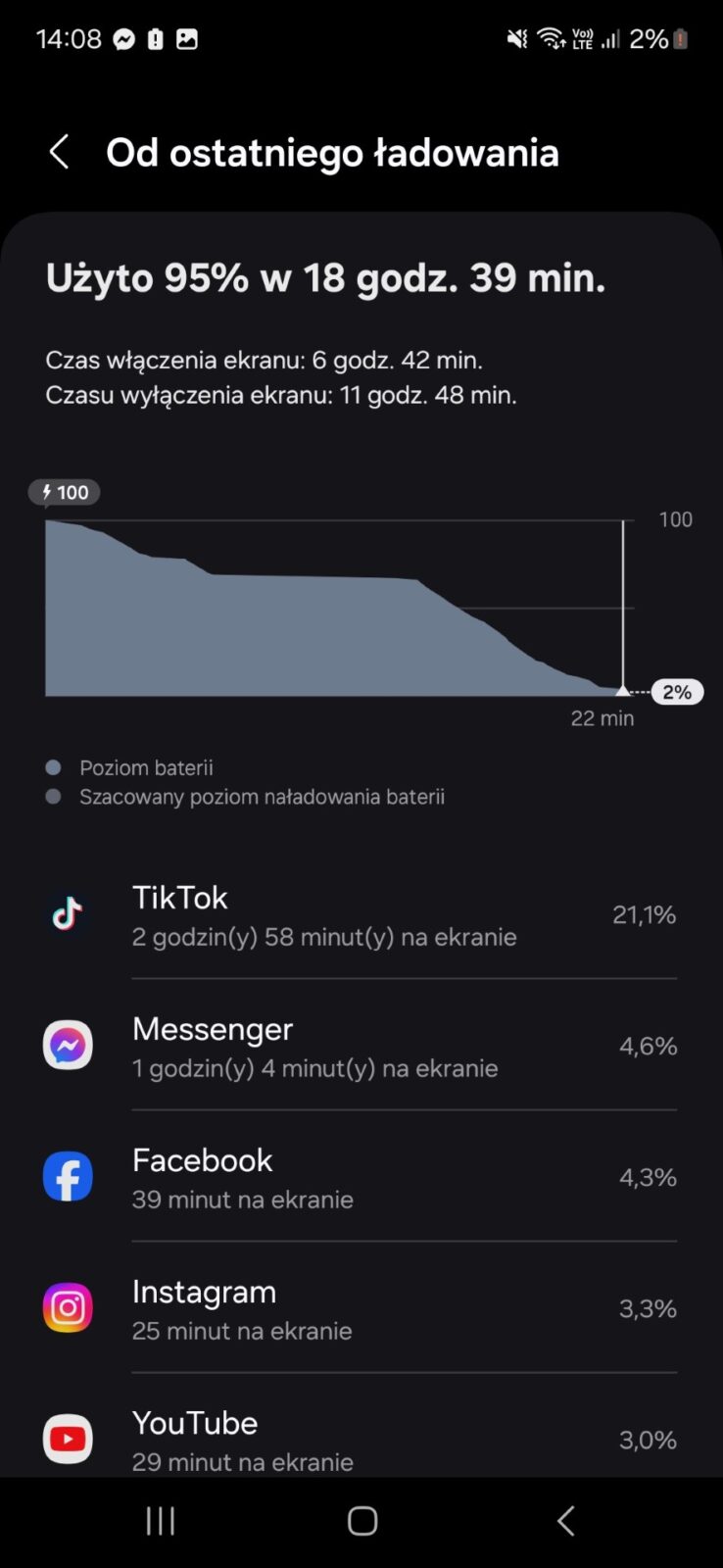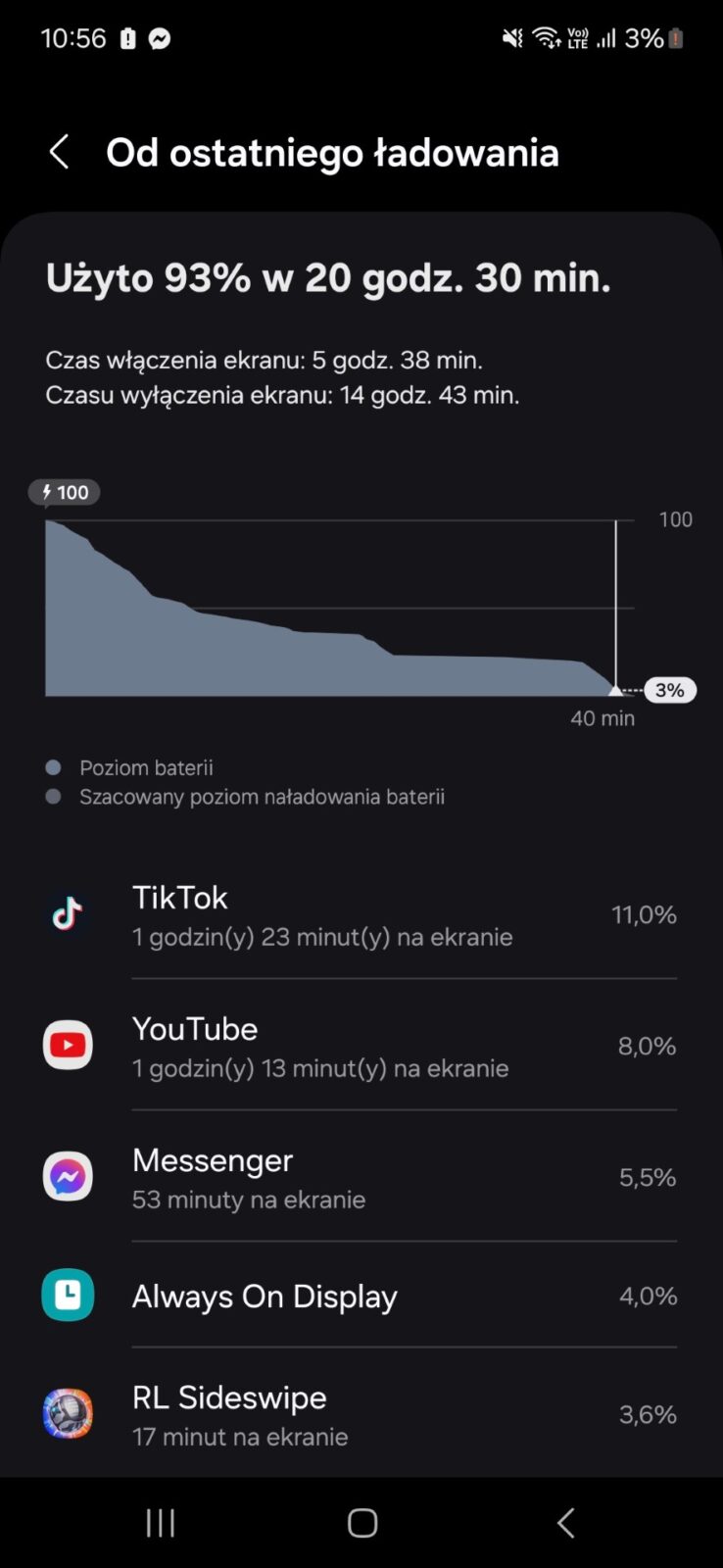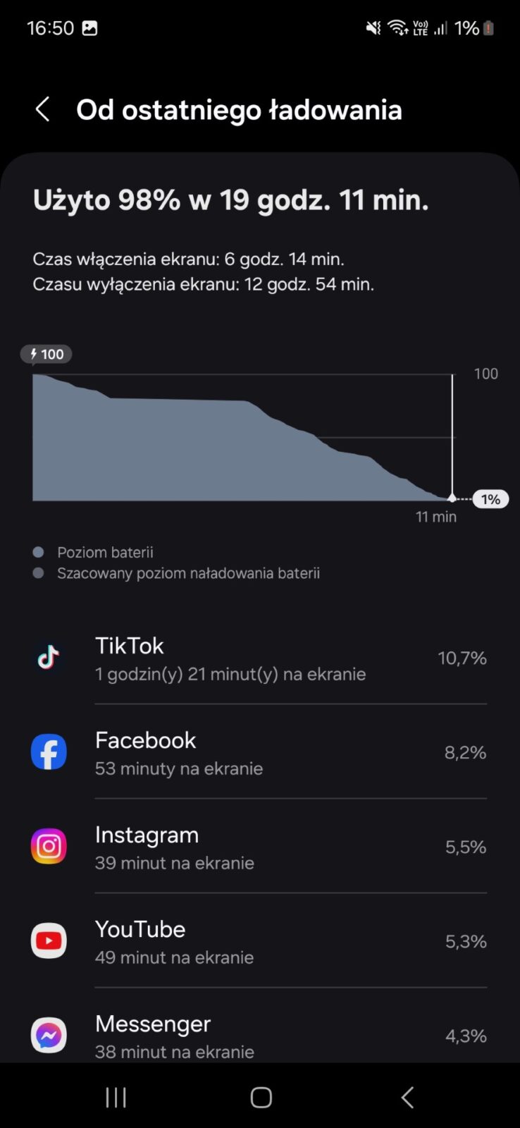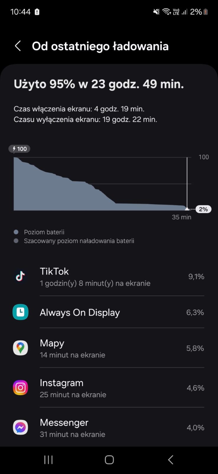 Jaka z tego konkluzja? Exynos 1380 mógłby lepiej radzić sobie z zarządzeniem energią przy korzystaniu z internetu w sieci komórkowej, bo wtedy możecie mieć problem, by wytrzymać pełny dzień. Jednocześnie czekają was nawet dwa dni przy niższym odświeżaniu ekranu i korzystaniu głównie z Wi-Fi. Wymagające zadania, jak gry czy częste przełączanie zasięgu mocno osłabiają akumulator, ale smartfon poradzi sobie w cyklu mieszanym z całym dniem pracy.