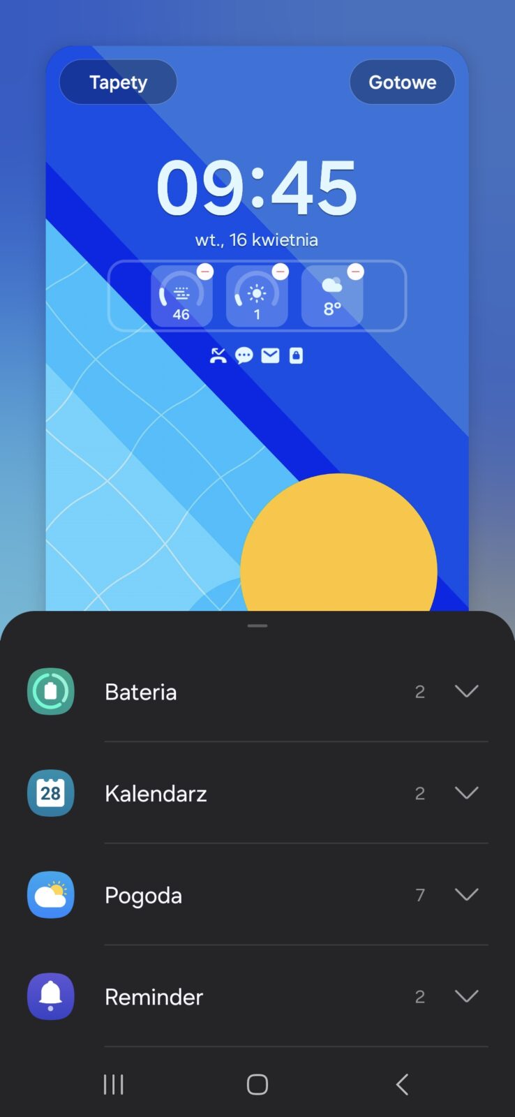 Jeśli zdarzyło wam się czytać recenzje smartfonów Samsunga z ostatnich lat, to z pewnością nie będę was mógł tu czymkolwiek zaskoczyć. Doszło do niewielkich zmian wizualnych, przede wszystkim na panelu powiadomień, gdzie ikony stały się półprzezroczyste. Ponadto smartfony Samsunga pozwalają na znaczną personalizację tego, co widzimy na ekranie blokady. Po kliknięciu widżetu z godziną naszym oczom może ukazać się lista widżetów z kilkoma funkcjonalnościami. Umieścimy tam chociażby przypomnienia czy widżet SmartThings ze skrótami do urządzeń inteligentnego domu. Ponadto zmienimy ikony szybkiego wyboru, zmienimy styl zegara i dodamy do 4 miniwidżetów widocznych pod zegarem oraz w Always-On Display.