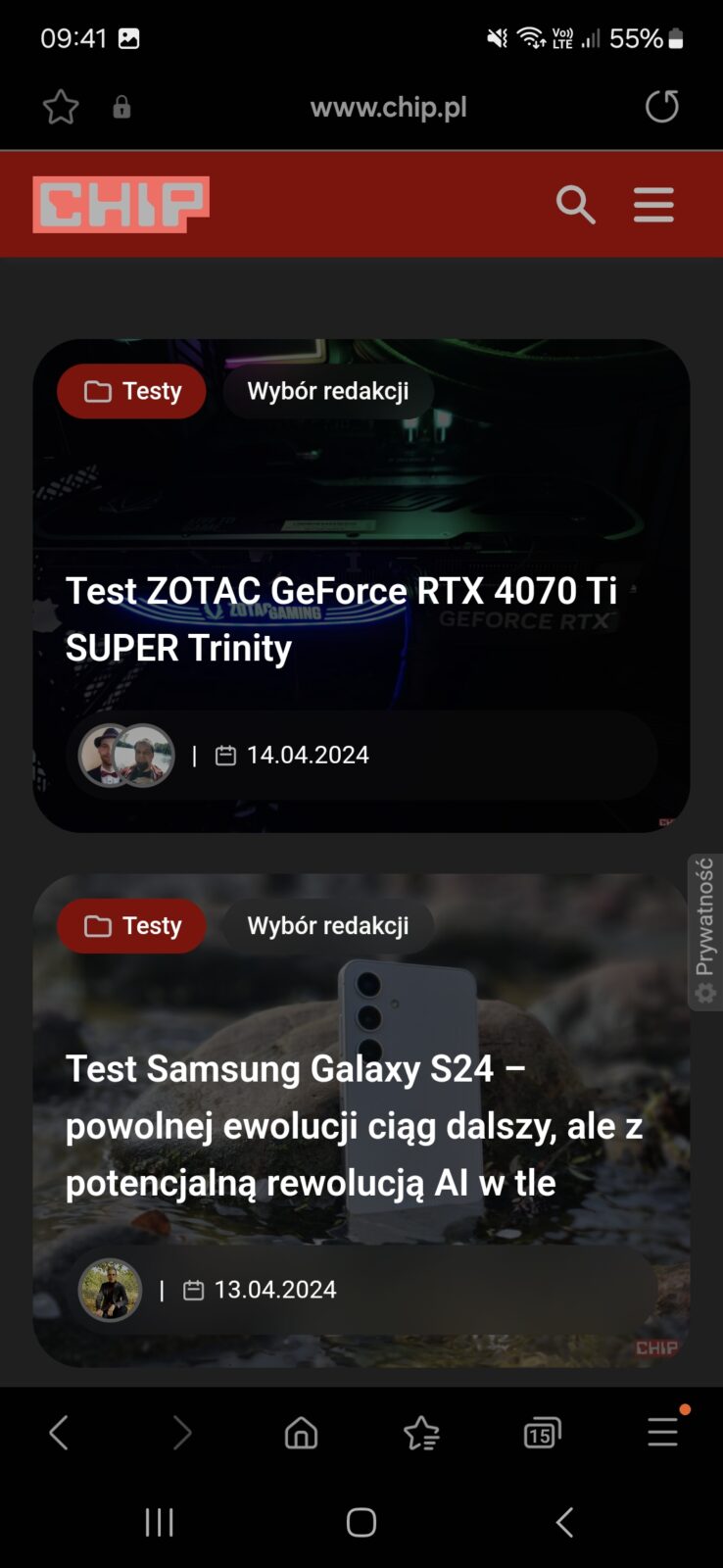 Tyle teorii, bo w praktyce Samsung zepsuł jeden aspekt, który niezmiernie irytuje przy oglądaniu treści na jasnych tłach. Smartfon ma okropne kąty widzenia, przez które wielokrotnie widać przebarwienia. Przez ekran przechodzi coś na wzór zorzy polarnej, ale zaraz z nią pojawiają się przyciemnienia i plamy, które odbierają satysfakcję z jasnego trybu. Szkoda, bo pod względem nasycenia barw, odwzorowania czerni i bieli czy poziomu jasności to panel, który nie miałby czego się wstydzić. Jeśli jednak będziecie chcieli obejrzeć na nim coś pod nieidealnym kątem lub z drugą osobą, możecie się niemiło rozczarować.