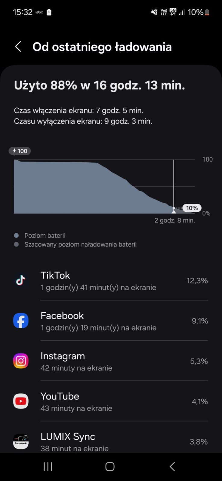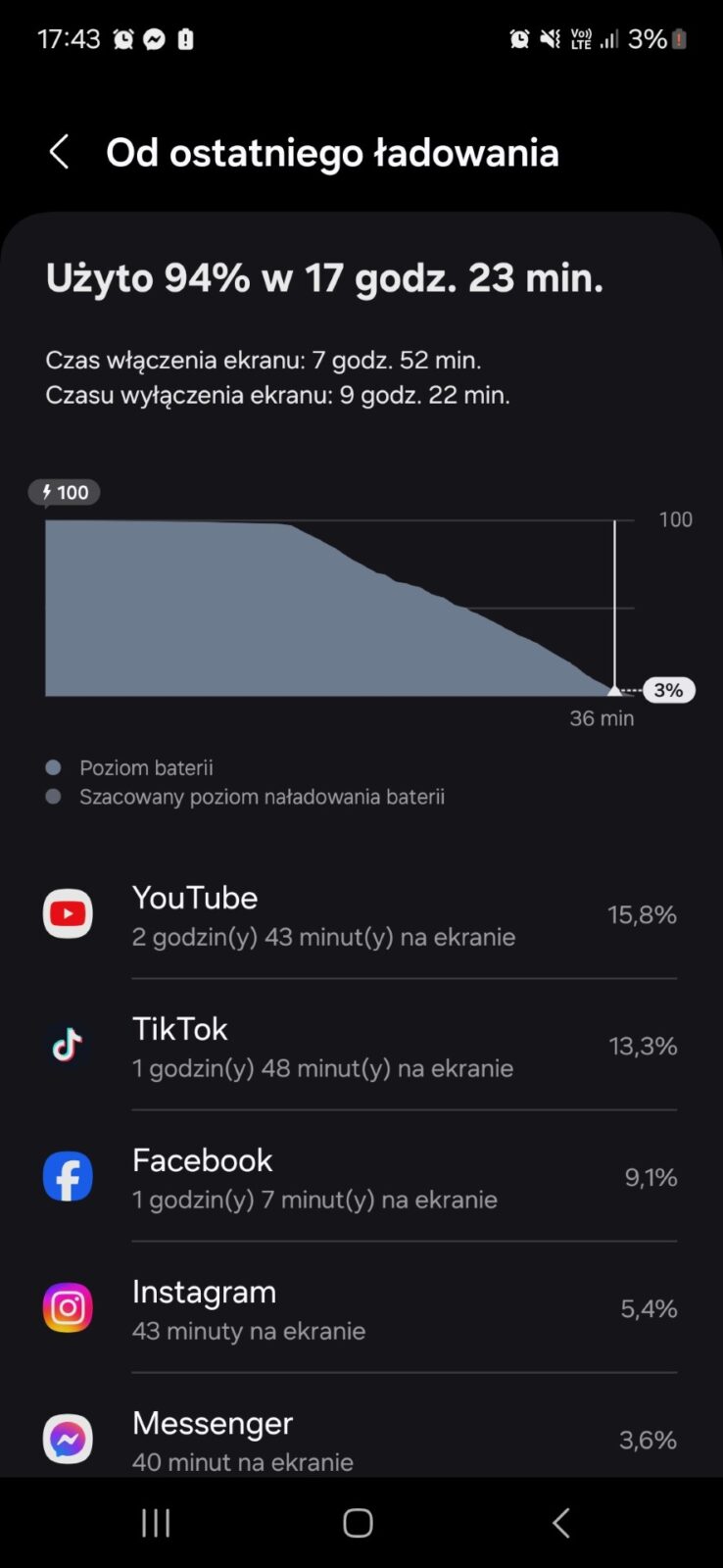 Gdybyście mieli zgadywać pojemność ogniwa Samsunga Galaxy A35 5G, niemal na pewno podalibyście prawidłową wartość. Smartfon, podobnie jak inne propozycje producenta i większość smartfonów na rynku, korzysta z akumulatora o pojemności 5000 mAh. Czasy pracy są jednak dość… rozbieżne. Zdarzały się momenty, gdy smartfon pracował zaledwie 4,5 godziny na ekranie – wtedy całą trasę korzystałem z LTE/ 5G. Były też momenty, gdy czas na włączonym ekranie wynosił 8 godzin – wtedy korzystałem wyłącznie z Wi-Fi, a telefon służył głównie do oglądania filmów.