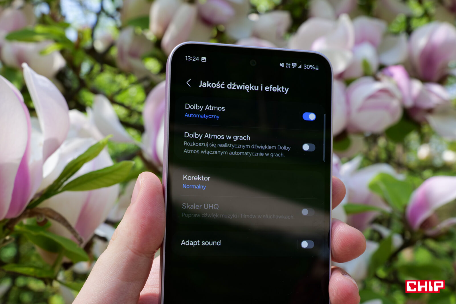 Jeśli chcemy nieco zmodyfikować te wrażenia, skorzystamy z ustawień ukrytych pod nazwą Dolby Atmos. Otrzymujemy kilka trybów (gra, film, muzyka, inteligentny), które niewiele zmieniają na głośnikach, ale po aktywacji na słuchawkach bezprzewodowych mogą nieco poprawić odczucia. Oprócz tego skorzystamy z tradycyjnego korektora graficznego z predefiniowanymi trybami oraz kilkoma suwakami i tu zmiany odczuwamy od razu.