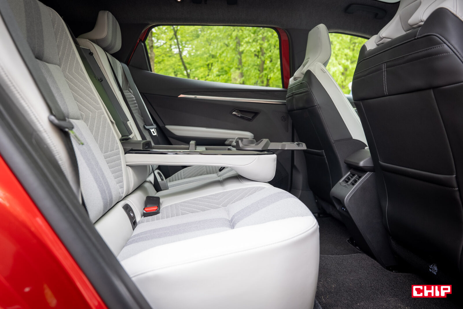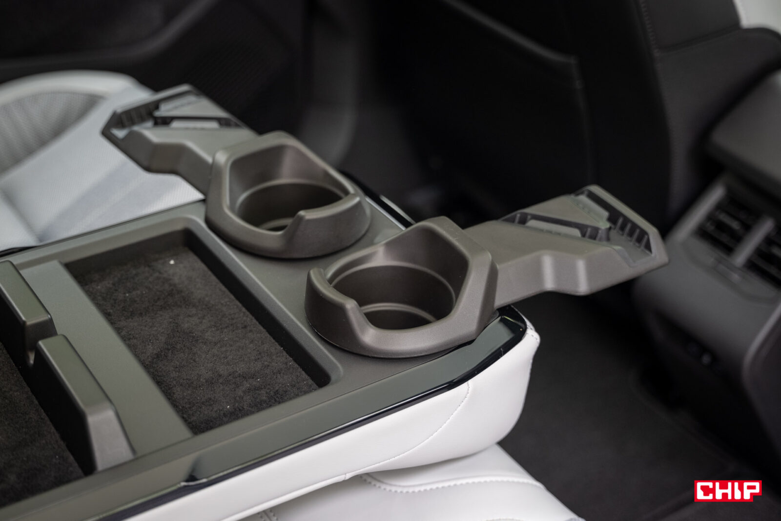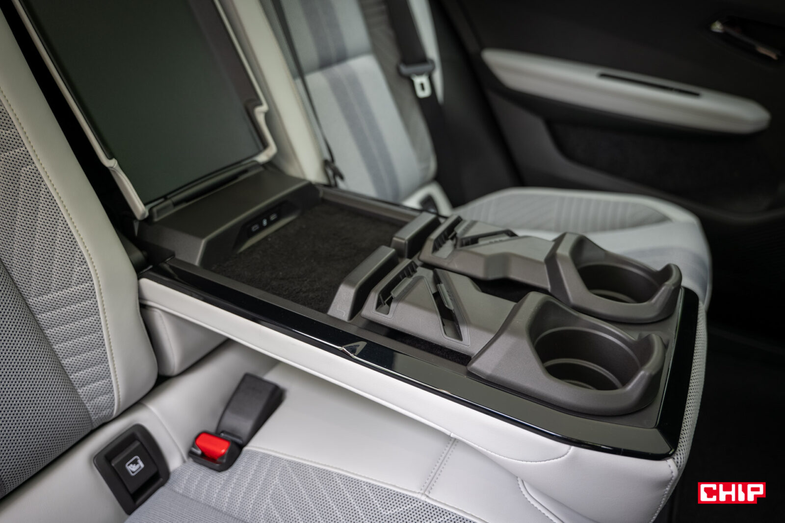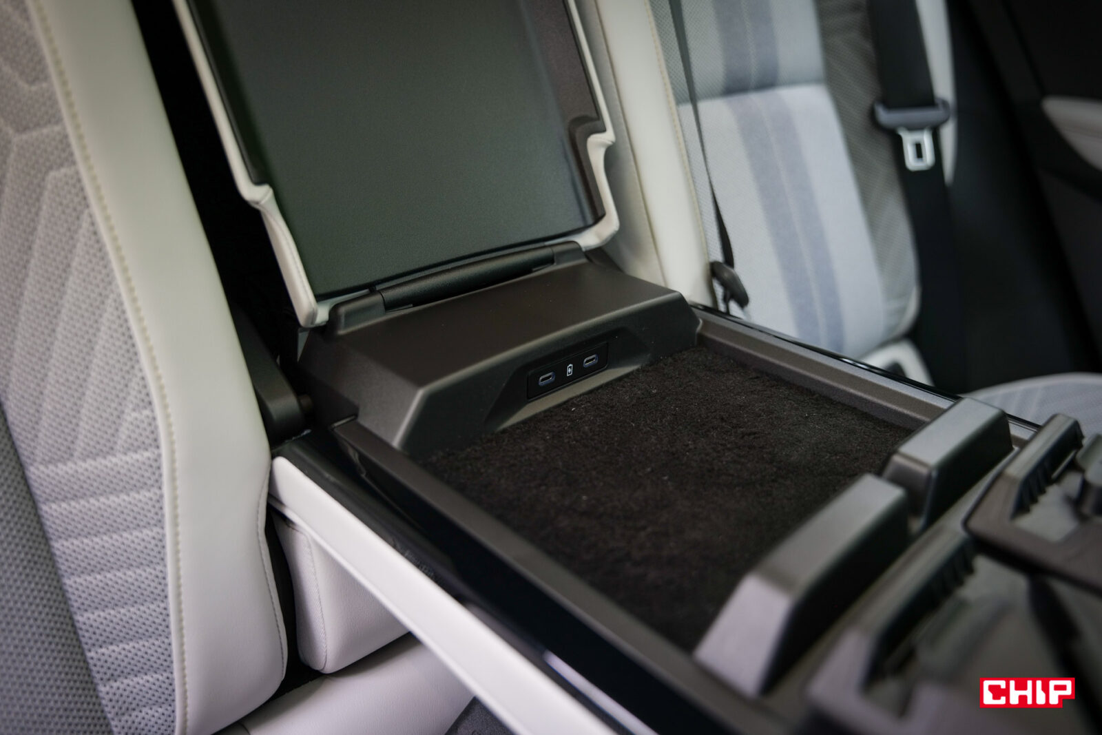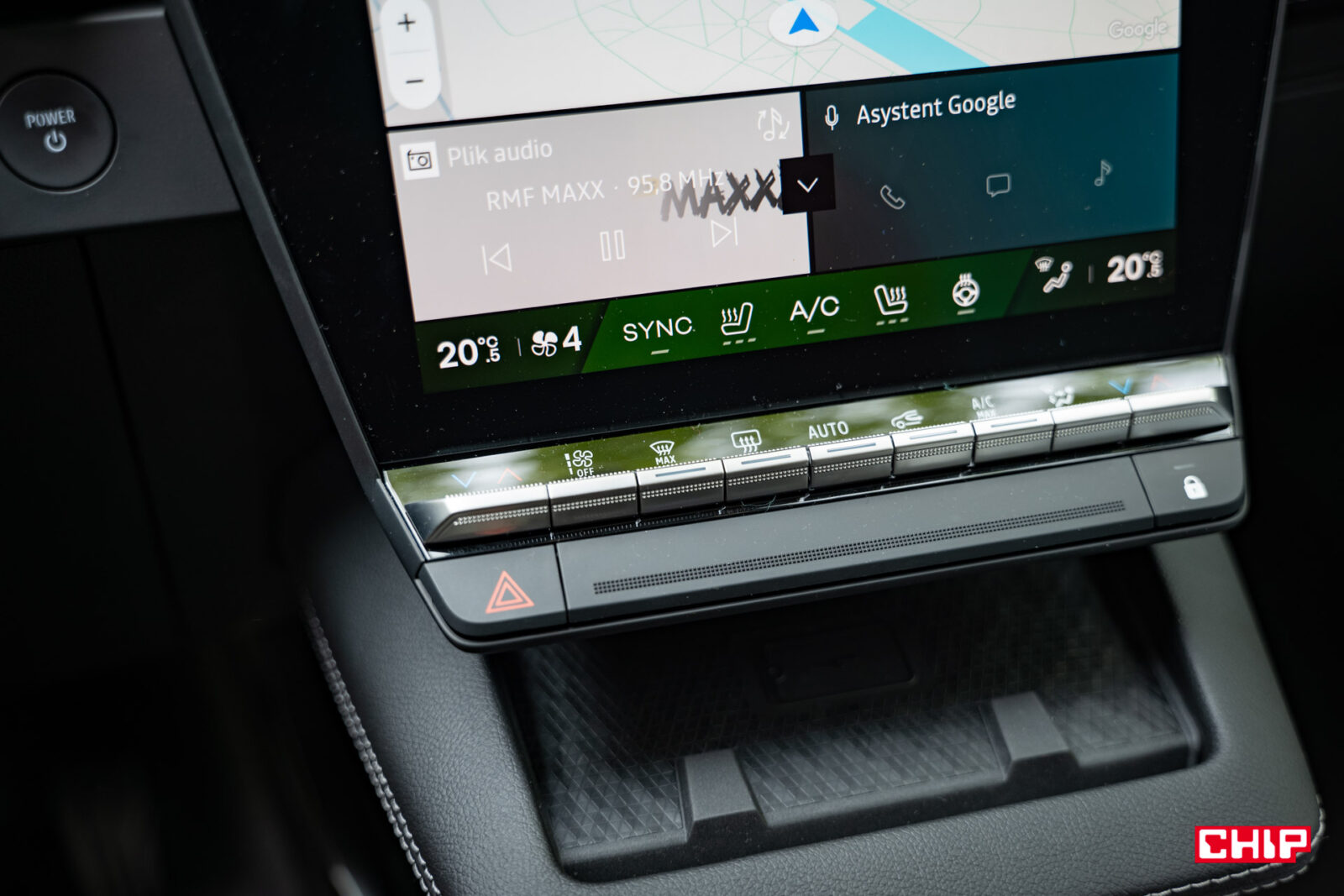 Z tyłu umieszczono za to całkiem praktyczny podłokietnik Ingenius. Po rozchyleniu części obitej tapicerką naszym oczom ukazuje się przestrzeń, gdzie umieścimy nasze urządzenia i podłączymy je do ładowania przez porty USB-C oraz uchwyt na kubek, w którym znajduje się też chwytak dla naszych urządzeń mobilnych. To mała rzecz, ale zwiększa komfort jazdy. Z pewnością poprawi go też system audio od Harman and Kardon (w wariancie “iconic”) oraz system multimedialny oparty o Android Auto i wykorzystujący nawigację Google. Wspiera on komendy głosowe i aplikacje ze sklepu Google Play.