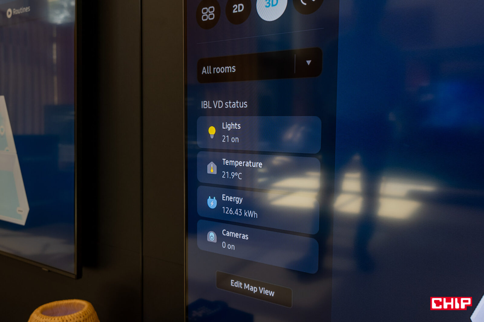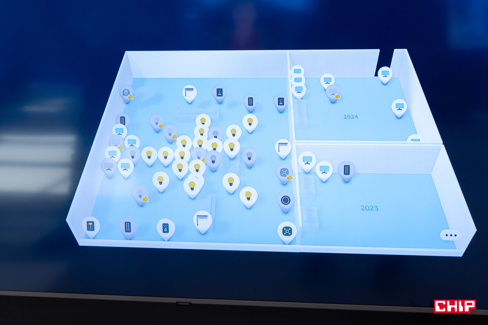 W Polsce Daily+ będzie przede wszystkim szybką drogą do rzucenia okiem na rozwiązania SmartThings. W telewizorach z 2024 roku otrzymamy już nie tylko listę urządzeń inteligentnego domu podpiętą do aplikacji, ale i mapę 3D. Ta opracowywana jest na bazie informacji z każdego z urządzeń, jednak bez udziału usług lokalizacji opartych o GPS. Jeśli miałbym obstawiać zasadę działania, to pewnie wiąże się ona z odczytywaniem mocy sygnału sieci Wi-Fi, jaki telewizor odbiera od urządzeń.