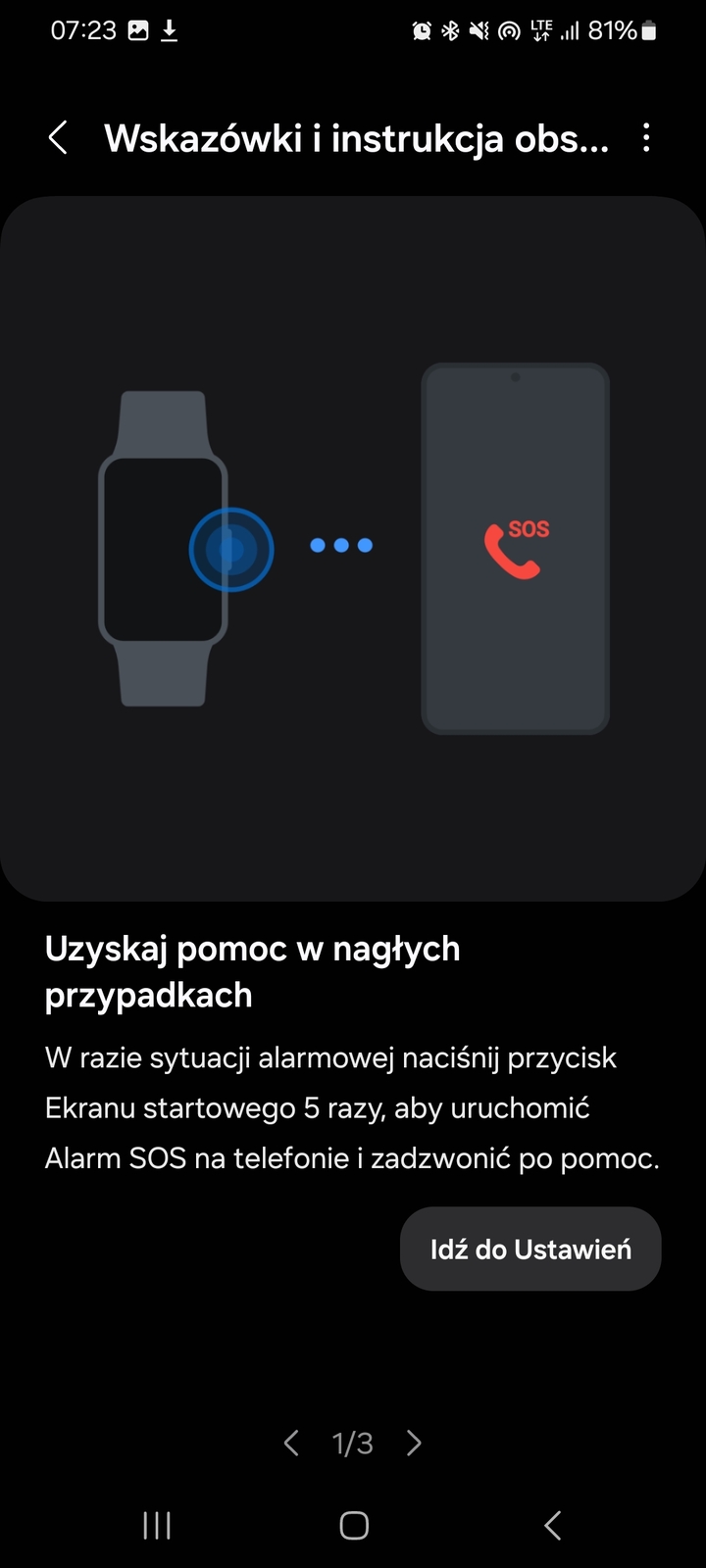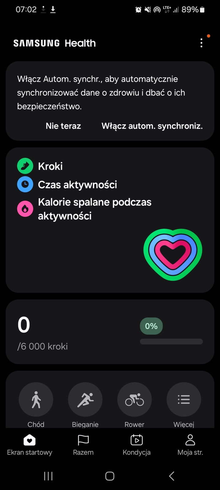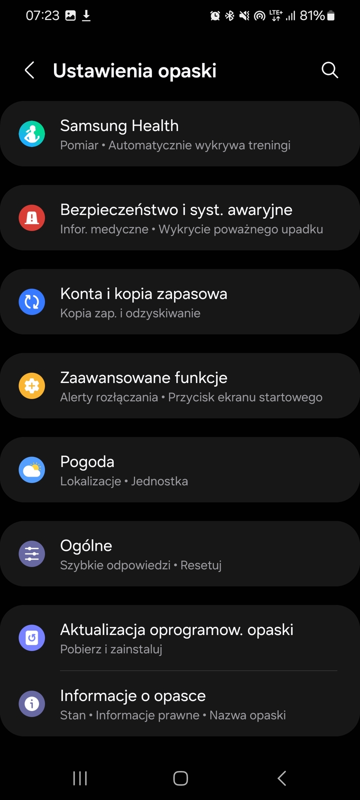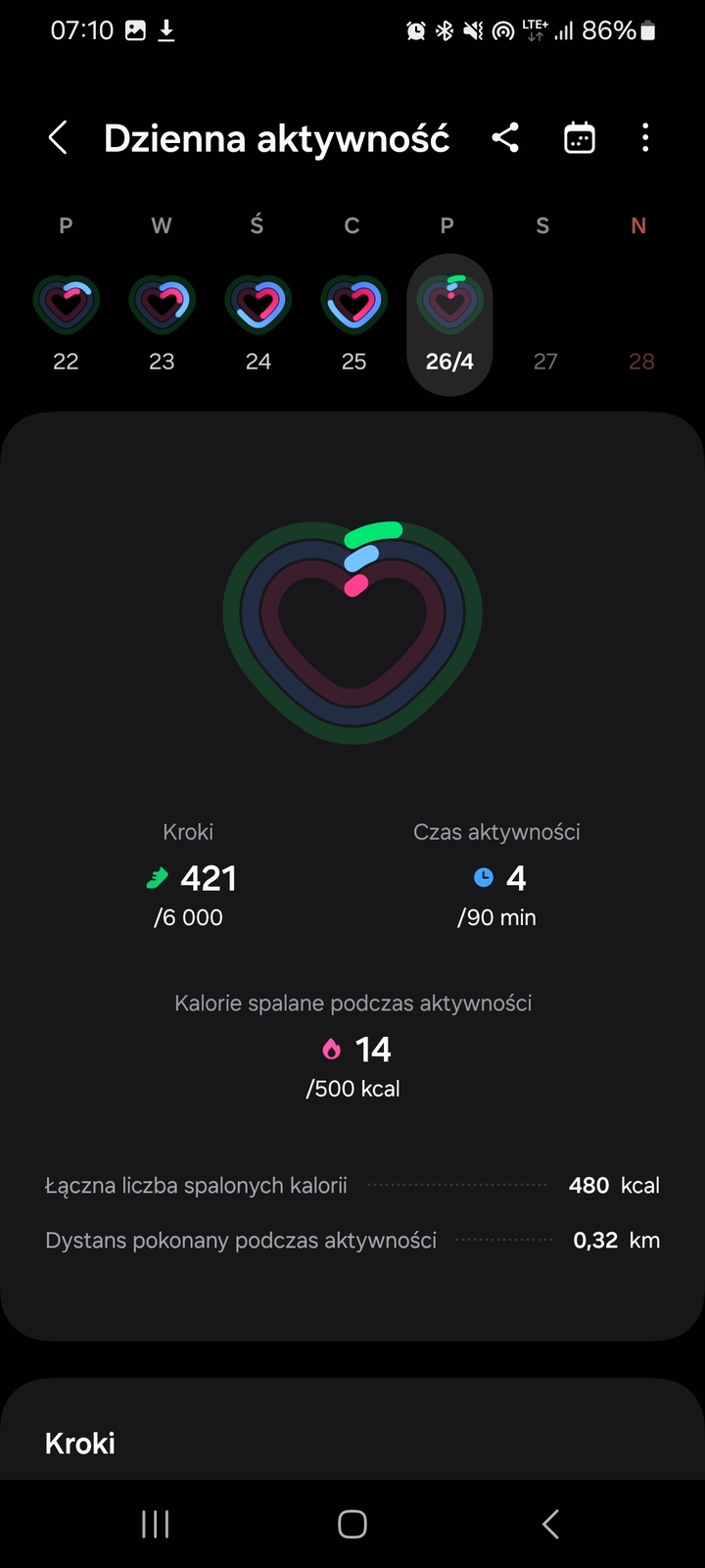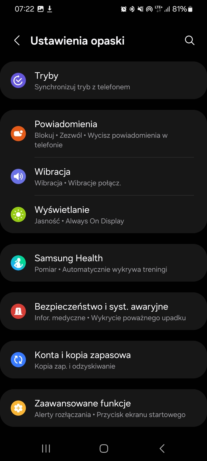 Ja opaskę miałem sparowaną cały czas z moim prywatnym Samsungiem Galaxy S21+ i nie odnotowałem żadnych problemów z działaniem opaski czy zliczaniem kroków, ale w tekstach inni recenzenci zwracali uwagę, że nie zawsze tak jest. Chodzi o to, że podobno o ile podczas współpracy ze smartfonami Samsunga wszystko przebiega idealnie, o tyle jeśli sparujemy smartbanda z telefonami innych firm, to mogą czasami wystąpić np. rozbieżności w ilości kroków pokazywanych w aplikacji na telefonie i na ekranie opaski. Wtedy też przycisk opaski nie będzie działał jako zdalny spust migawki aparatu w smartfonie (funkcja działa tylko ze smartfonami Samsunga z nakładką One UI w wersji 6.0 lub nowszej). Także warto mieć to na uwadze.