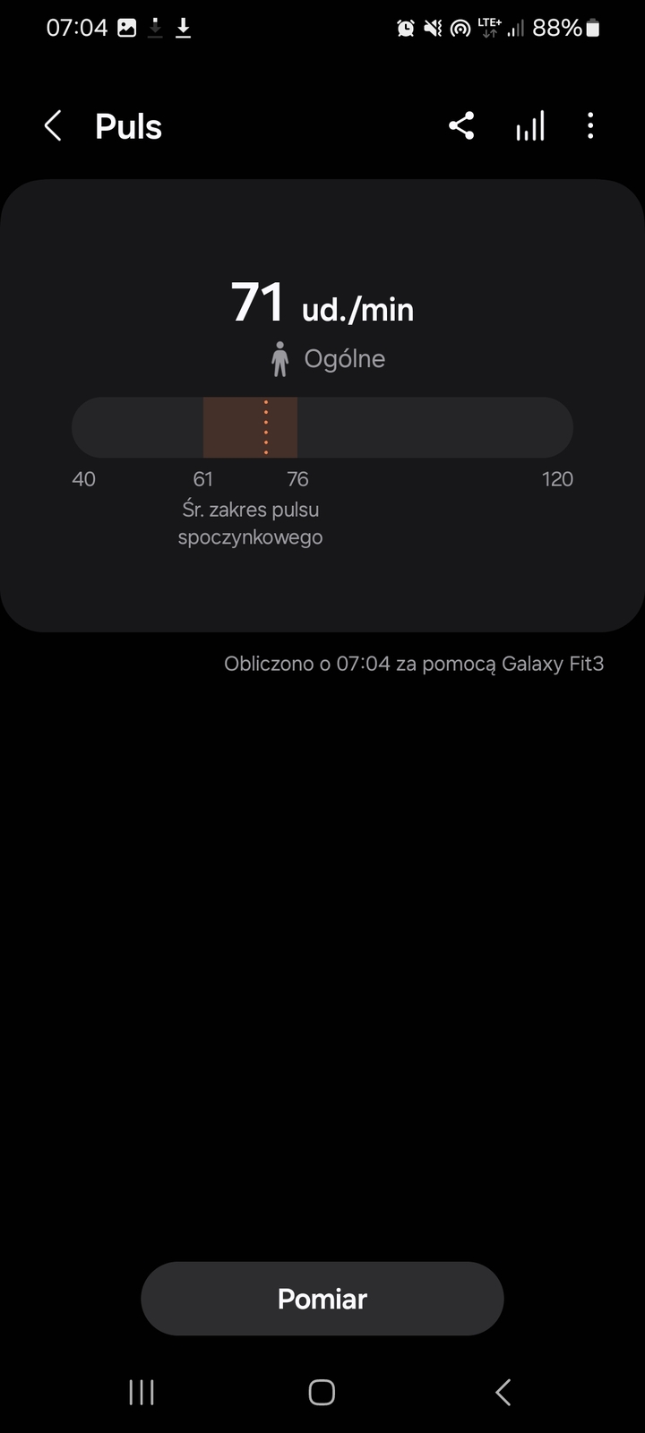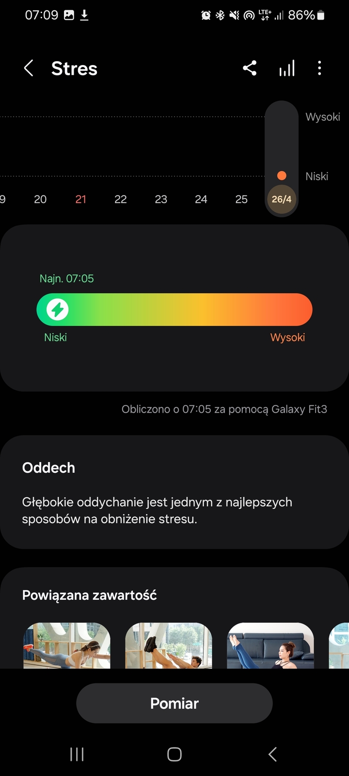 Obydwie aplikacje są całkowicie darmowe, przejrzyste i funkcjonalne. Oczywiście nie są w nich wyświetlane żadne reklamy. Podczas trwania testów parowanie Samsunga Galaxy Fit3 przebiegało szybko i bezproblemowo, wszystkie informacje były przesyłane bardzo szybko między urządzeniami. I mam tu na myśli zarówno zliczanie kroków w aplikacji Samsung Health, jak i zmianę tarcz zegarka w Galaxy Wearable. Oczywiście w aplikacji Samsung Health znajdziemy nie tylko bieżące pomiary tętna czy poziomu tlenu we krwi, ale też pełną historię pomiarów. Aktualizacja oprogramowania również przebiega bezproblemowo i jest pobierana z poziomu telefonu przez Galaxy Wearable i przesyłana do opaski.