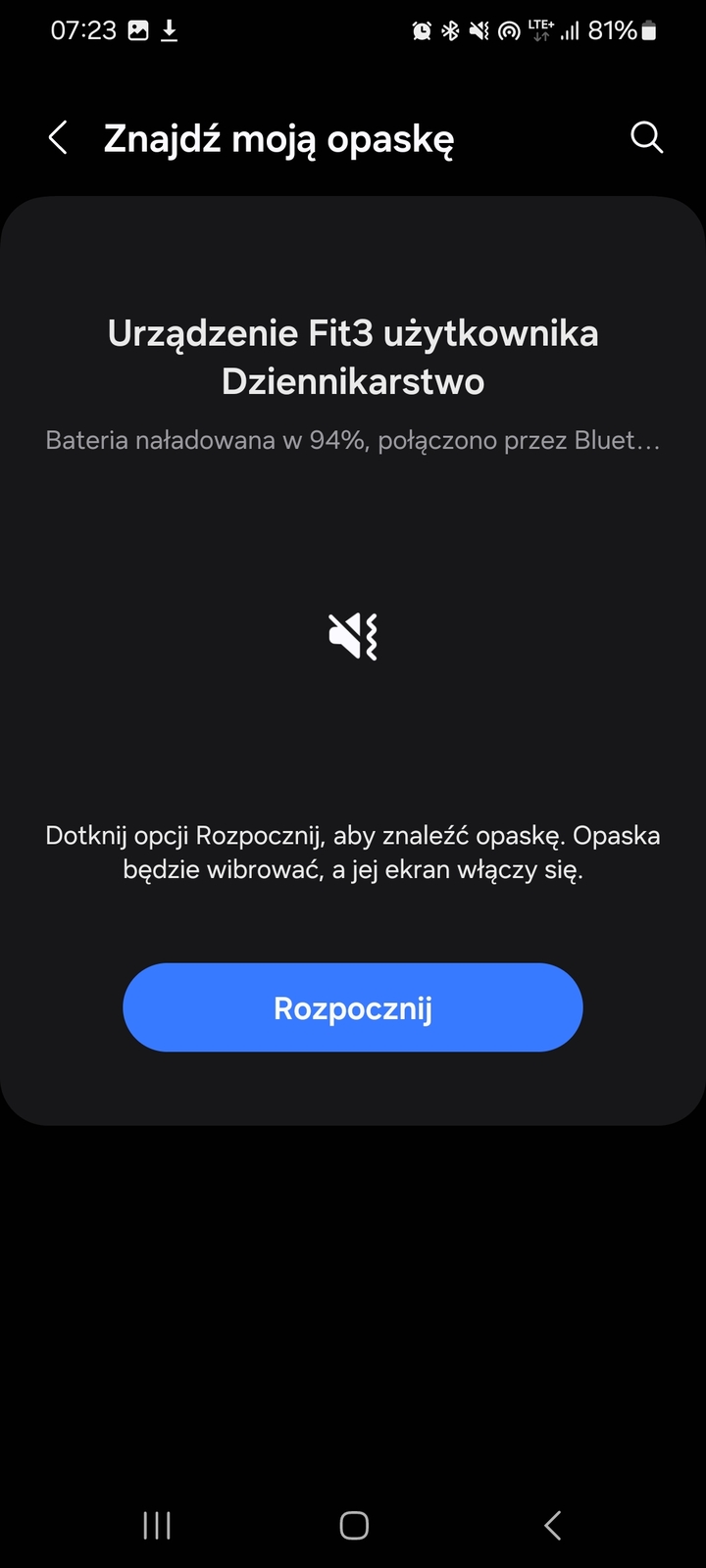 Na koniec chciałbym wspomnieć o bardzo irytujących powiadomieniach, które wyświetla na telefonie aplikacja Galaxy Wearable, kiedy tracimy opaskę z zasięgu bluetooth. Oczywiście założenia są słuszne i maja nam pomóc zmniejszyć ryzyko zgubienia opaski, ale w praktyce bardzo często jest to irytujące. Zostawiam telefon na stole w pokoju i idę do WC – już wyskakuje powiadomienie. Zdejmuję opaskę i idę z telefonem do altany – to samo. Telefon wibruje, bo wyskoczyło powiadomienie z aplikacji.