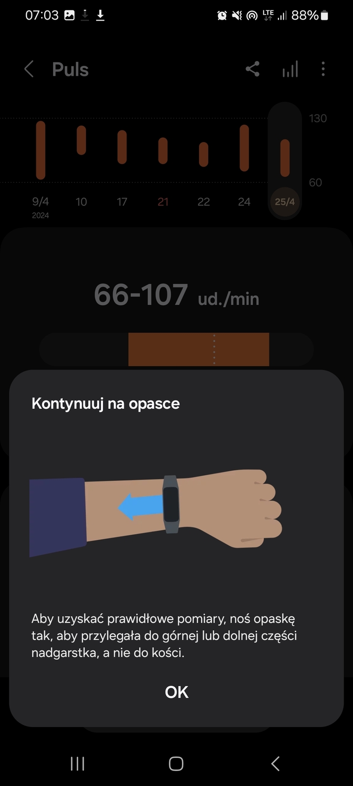 P.S. Nie miałem możliwości sprawdzenia poprawności wyników wszystkich funkcji które oferuje opaska, np. poziomu tlenu we krwi, ale te które mogłem pokazały, że pomiary wykonane opaską są godne zaufania. Oczywiście w przybliżeniu, bo nie jest to profesjonalny sprzęt medyczny. Niemniej pomiary pulsu wykonywane jednocześnie opaską, jak i naramiennym ciśnieniomierzem za 349 zł z apteki wykazały, że odchylenia w wynikach uzyskanych z opaski nie przekraczają kilku procent.