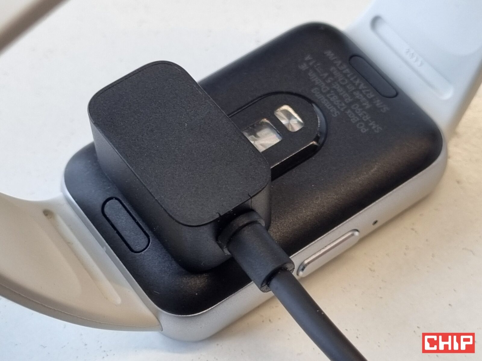 Producent zastosował tu akumulator o pojemności 208 mAh. To o 49 mAh więcej niż w Galaxy Fit2, ale to zrozumiałe – w końcu mamy tu większy ekran. Według zapewnień producenta akumulator powinien wytrzymać 13 dni pracy. Tyle teorii, a jak wygląda praktyka? Ja musiałem podłączyć zegarek do ładowarki już po 4 dniach, ale muszę zaznaczyć, że zdecydowaną większość czasu miałem ustawioną maksymalną jasność ekranu i włączone Always on Display. Po wyłączeniu AoD czas pracy wydłużył się do ok. 6 dni. Także niestety jest to nadal daleko od deklarowanych 13 dni.