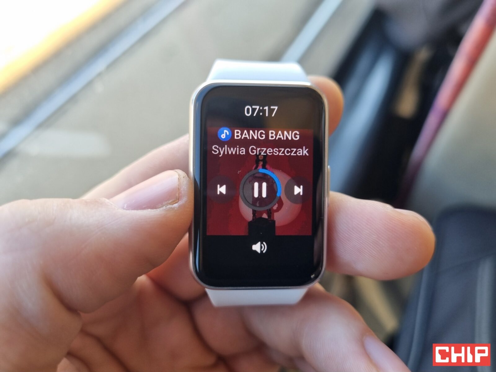 Ponadto możemy liczyć na pomiary tętna (ciągle lub co 10 minut), stresu i poziomu tlenu we krwi (SpO2). Jest również oczywiście zliczanie kroków ponad 100 trybów treningowych oraz możliwość monitorowania snu. Poza tym możemy ustawić sobie budzik, zmierzyć czas stoperem, sprawdzić aktualną prognozę pogody i kalendarz oraz zarządzać odtwarzaniem muzyki, którą odtwarzany na telefonie. Jest też funkcja znajdź mój telefon – po jej uruchomieniu telefon zaczyna wibrować (oczywiście, jeśli jest w zasięgu bluetooth).