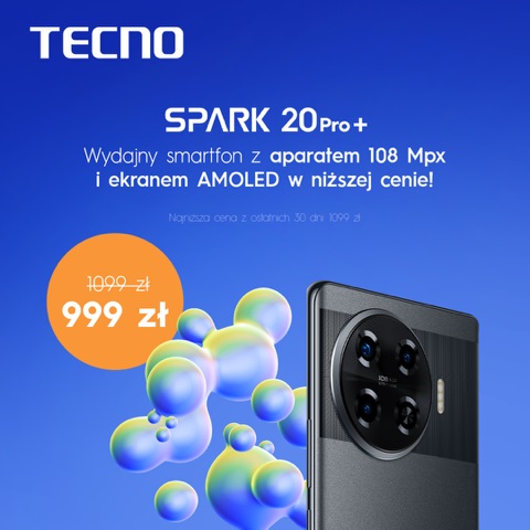 Tecno SPARK 20 Pro+, czyli ten najlepszy model w serii, dostępny jest za 999 złotych