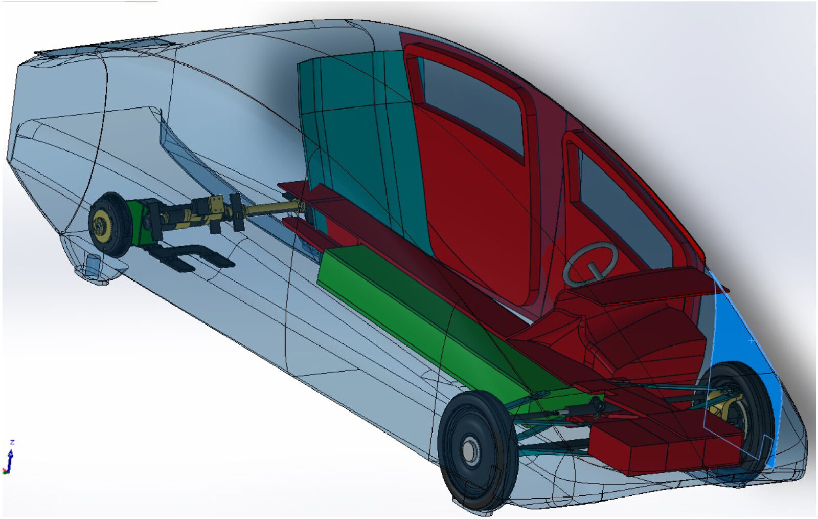 Badacze w swoim artykule naukowym na łamach periodyku Composite Structures prezentują szczegóły techniczne samochodu oraz wyniki symulacji zderzeń. Elektryk jest lekką i kompaktową maszyną. Licząc jedynie 4,5 metra długości, waży 350 kilogramów. Maksymalnie może rozwinąć prędkość 120 kilometrów na godzinę. Na jego dachu zostały zamontowane panele słoneczne od włoskiego producenta Solbian. Podwozie samochodu skonstruowano z tworzywa sztucznego wzmocnionego włóknem węglowym – tłumaczą naukowcy.