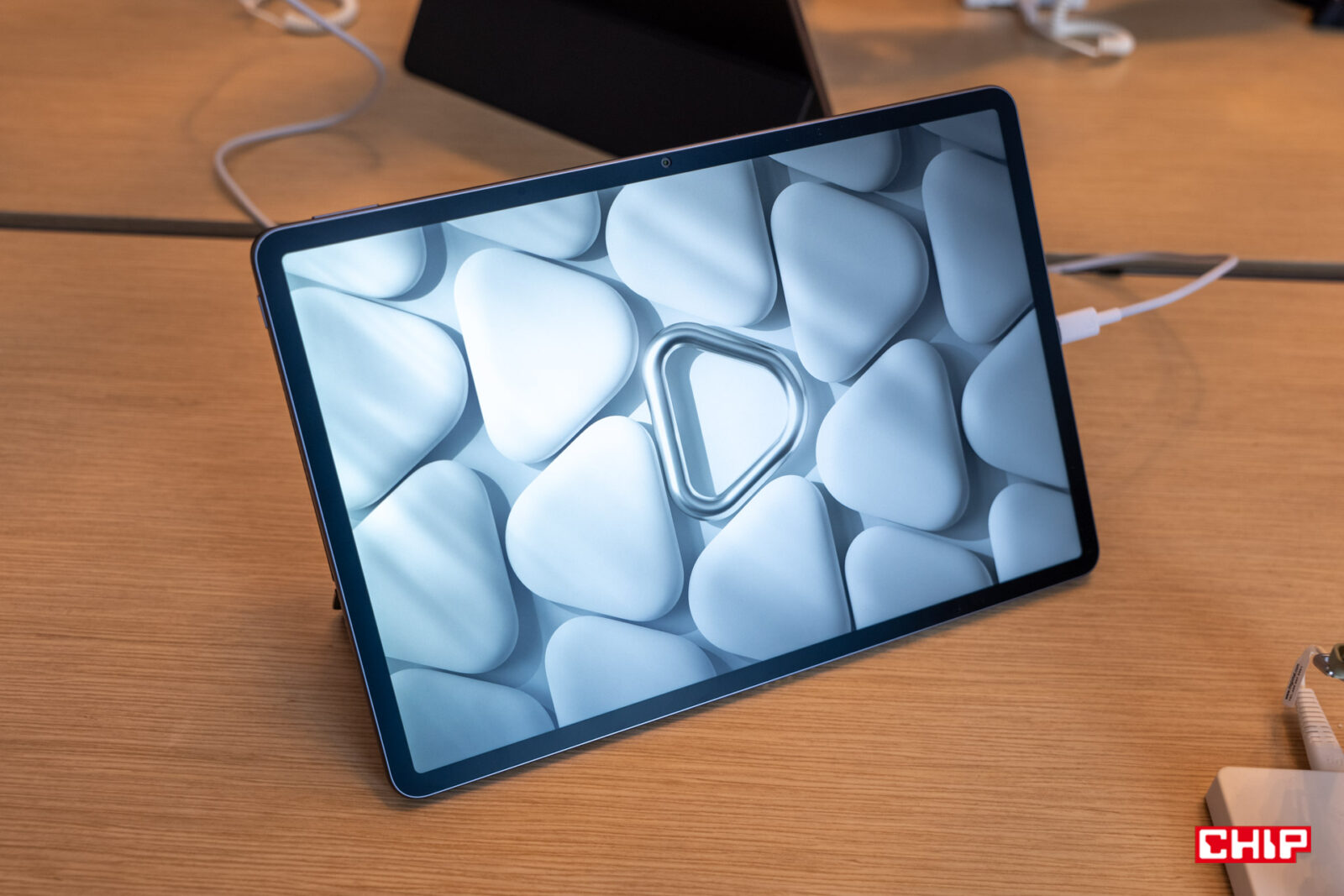 Jeśli poświecicie w tablet lampą błyskową smartfonu, rezultat faktycznie będzie wyjątkowy. Sęk w tym, by rozwiązanie radziło sobie w jasnym słońcu, a o to było trudno w Dubaju po 20:00. Powiem zatem o specyfikacji – 11,5-calowy panel PaperMatte (z warstwą świecącą podobną do IPS-ów) odświeża się z częstotliwością do 144 Hz, oferuje rozdzielczość 2800×1840 pikseli, kontrast dynamiczny 1500:1, pokrycie palety P3 oraz oczywiście obsługę dotyku.