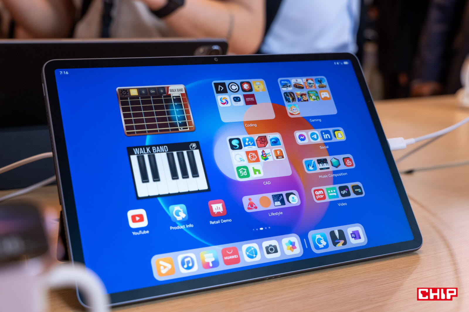 Premiera Huawei MatePad 11.5 S PaperMatte jest zaskakująca o tyle, że producent podczas prezentacji nie podał, jaki zastosowano układ obliczeniowy, a przy stoisku pomocnicy odmawiali odpowiedzi. Polski oddział Huawei poinformował mnie, że znajdzie się tam autorska jednostka Huawei. Wiemy jedynie o pe ołączeniu pamięciowym – 8 GB RAM-u i 256 GB na pliki użytkownika. To wszystko przy akumulatorze o pojemności 8800 mAh, który zmieścił się w obudowie o grubości 6,2 i masie 510 gramów. Całkiem nieźle, zwłaszcza przy systemie 4 głośników stereo.