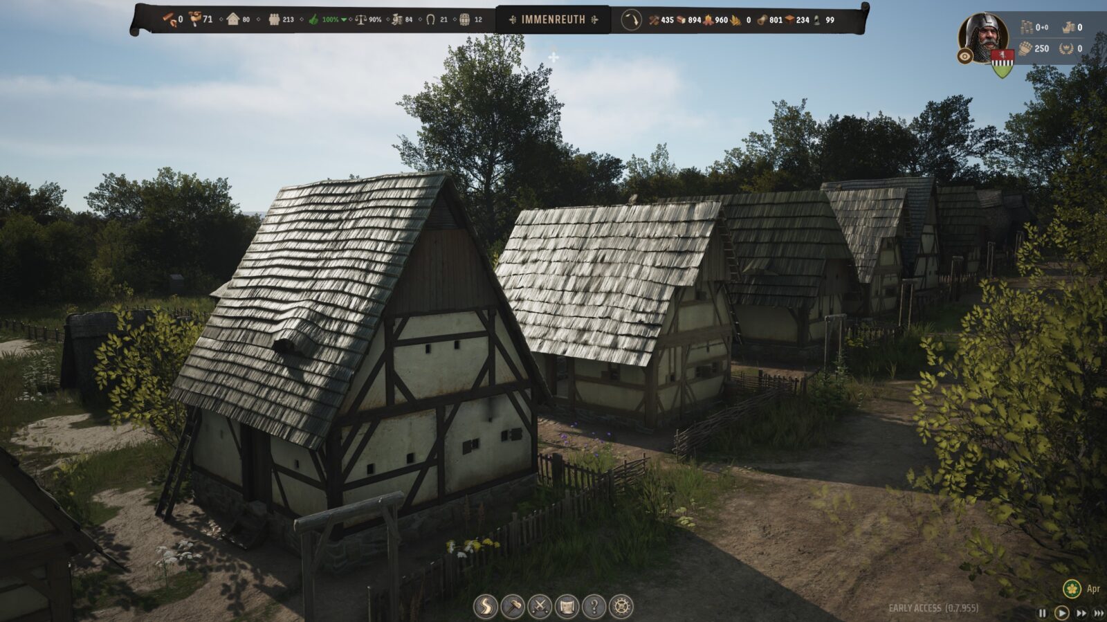 W tej produkcji kamień węgielny city builderów, do których zaliczają się właśnie domy mieszkalne, został potraktowany priorytetowo i z pomysłem. Nie tylko stawia się je w ciekawy sposób, planując przestrzeń mieszkalną i gospodarczą, ale też ulepsza pod kątem surowców, które mogą być produkowane przez mieszkańców. Jedni mogą przykładowo zapewniać dostawy warzyw, drudzy jajek, trzeci skór, a jeszcze inni jabłek. Domy można też wyspecjalizować w bardziej konkretnej produkcji (broni, narzędzi, napojów wyskokowych), a jeśli nie zadbamy o to, żeby mieszkańcy mieli dostęp do świeżej wody, kościoła, tawerny czy przestrzeni targowej pełnej jedzenia, opału i dóbr wszelakich, to prędzej czy później ogólne zadowolenie ulegnie znaczącemu spadkowi.