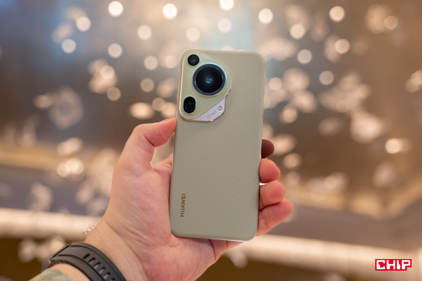 Początki z Purą 70 Ultra są zresztą obiecujące. Ekoskórze z tyłu może nie przykleiłbym łatki premium, ale z pewnością tłoczenie czyni ten materiał pewnym w chwycie. To się przydaje, bo Huawei Pura 70 Ultra to ciężka kobyła – przy masie 226 gramów i istotnie cięższej części z odstającymi aparatami, telefon należy trzymać pewnie. O ile dla mnie nie jest to problem, tak osoba korzystająca na co dzień z urządzenia lżejszego o 50 gramów miała z tym problem.