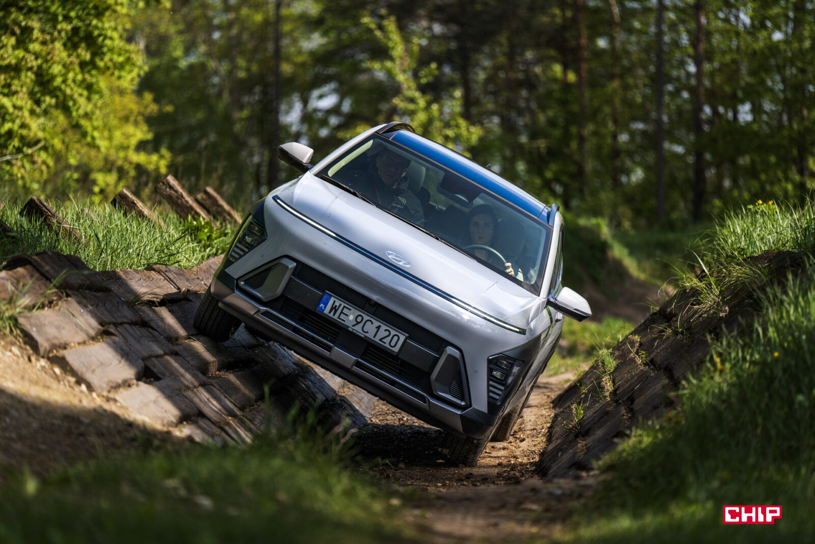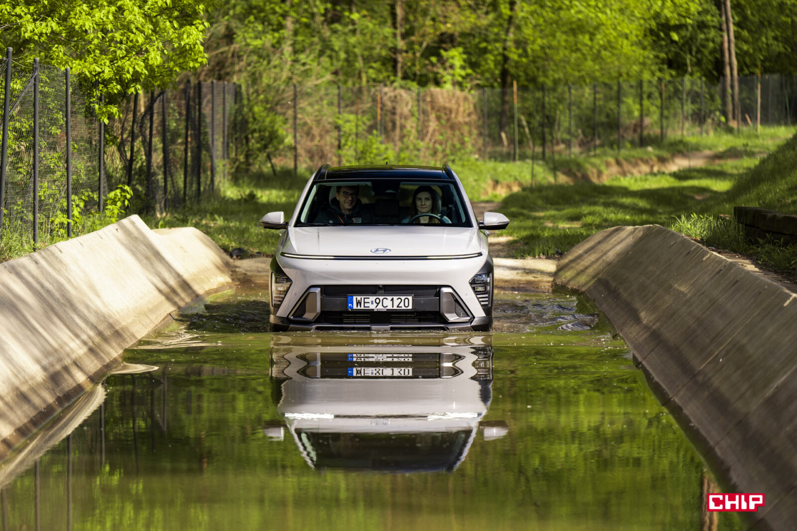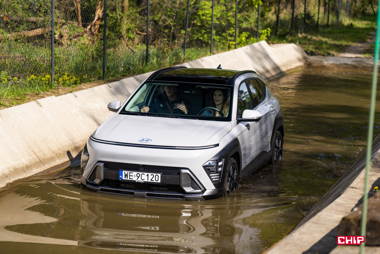 Jako bonus dodam, że jeżeli zdarza Wam się wyjechać z miasta i urządzać sobie niewymagające wycieczki offroadowe, ten niepozorny miejski SUV z napędem na jedną oś może Was porządnie zaskoczyć. Mieliśmy okazję przejechać się nim po mini-odcinku offroadowym na torze Modlin i muszę przyznać bez bicia, że byłam pewna, że skończymy na jakimś holowniku – auto albo położy się na bok, albo utknie w wodzie, albo zsunie się ze ścieżki i tyle będzie z jazdy… Nie będę tego opisywać, zdjęcia pokażą Wam nasze „zabawy”, a na koniec dodam tylko jedno – Kona skrywa o wiele więcej, niż Wam się wydaje!