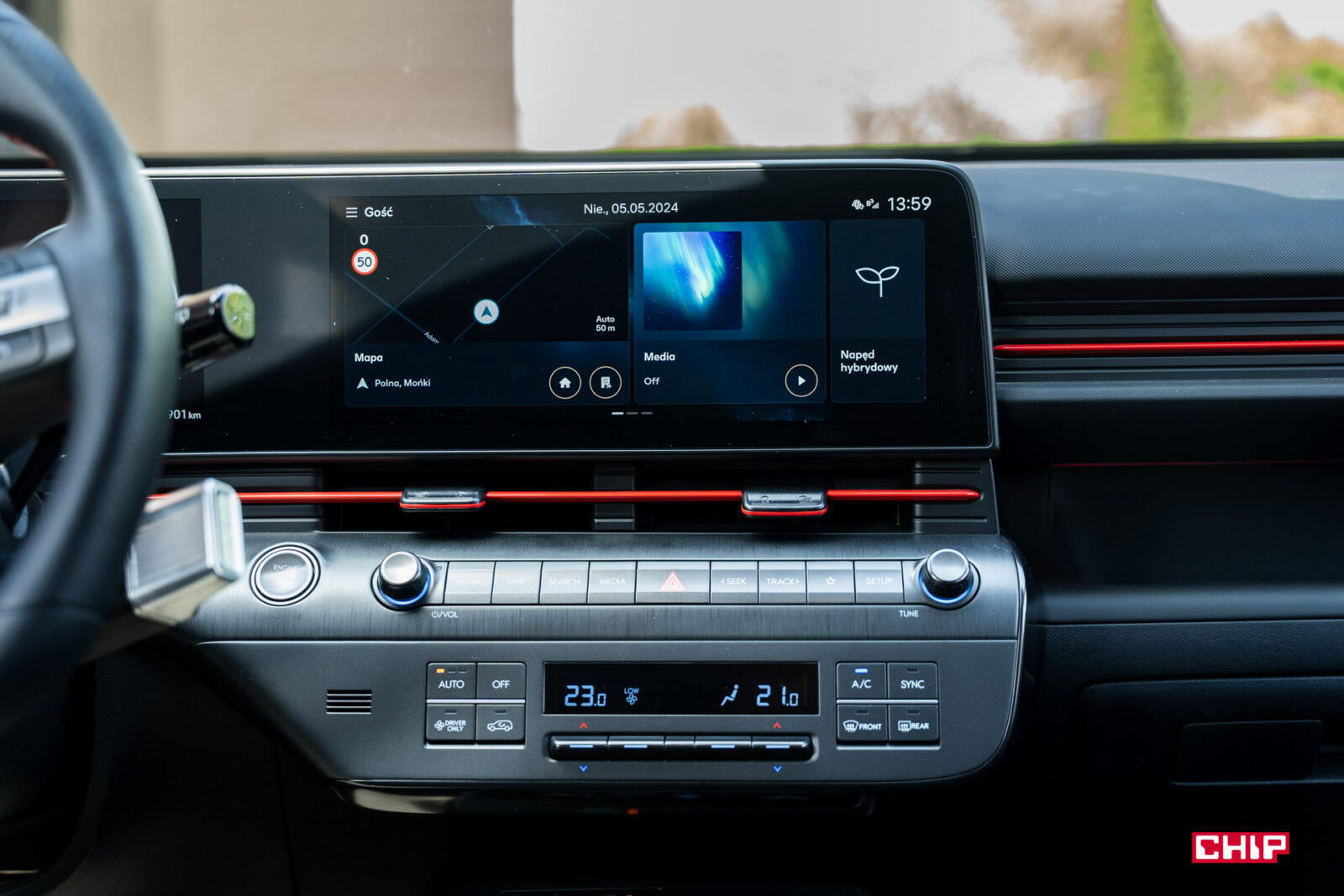 Do dyspozycji mamy dwa ekrany – dotykowy główny oraz kierowcy, obsługiwany z poziomu kierownicy. Oba są bardzo dobrej jakości, jasne i dobrze radzą sobie z refleksami padającego światła.