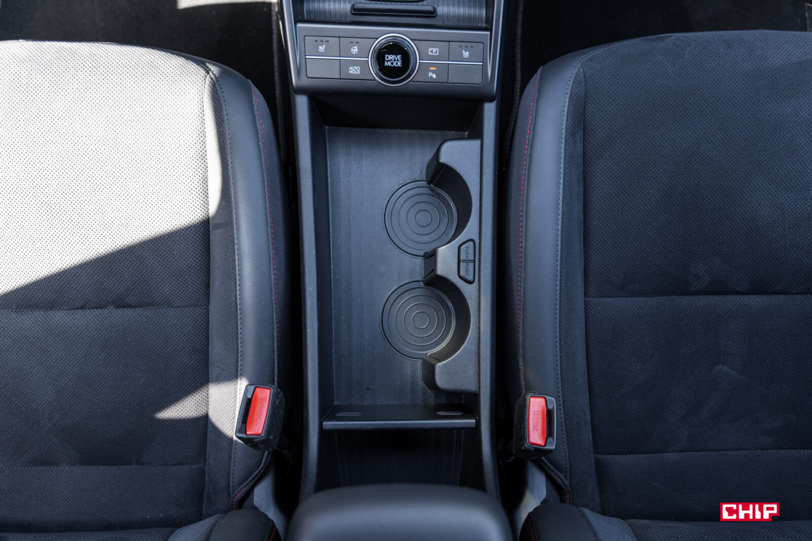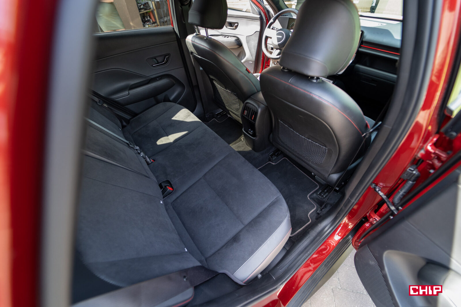 Udogodnień jest tu sporo, bo mamy sporo przestrzeni na przechowywanie różnych rzeczy w tunelu środkowym, co ułatwiają składane uchwyty na napoje. N-Line to najbogatszy wariant wyposażenia, więc dostajemy też ładowarkę indukcyjną, porty USB-C z tyłu i elektrycznie regulowane przednie fotele. Bardzo praktycznym elementem jest dodatkowa półka przed fotelem pasażera. Podobną znajdziemy w Toyocie RAV4 czy Fordzie Rangerze.