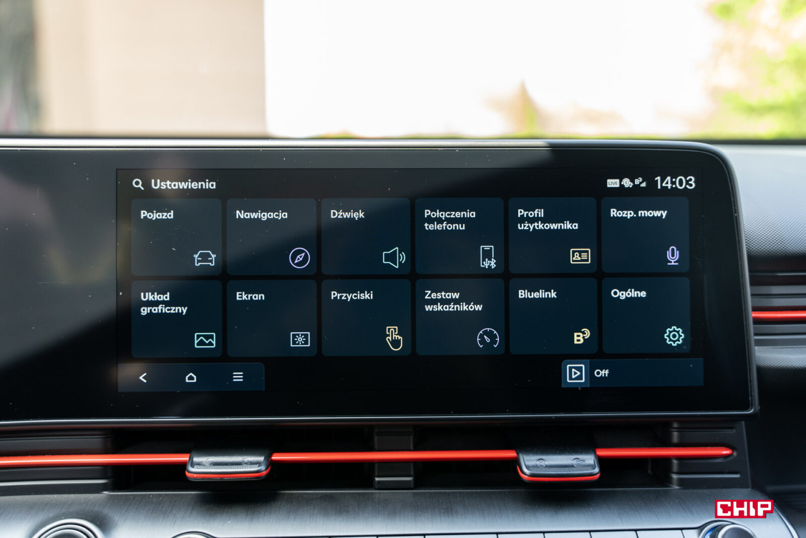 Interfejs ekranu głównego został nieco zmodyfikowany w pierwszej warstwie, ale w środku bez problemu odnajdą się dotychczasowi posiadacze aut Hyundaia oraz Kia. Menu jest proste w obsłudze i bardzo intuicyjne. Plus też należy się za wyeliminowanie problemu niewykorzystywania całej powierzchni ekranu podczas korzystania z Androida Auto. Teraz interfejs smartfonu zajmuje cały wyświetlacz.