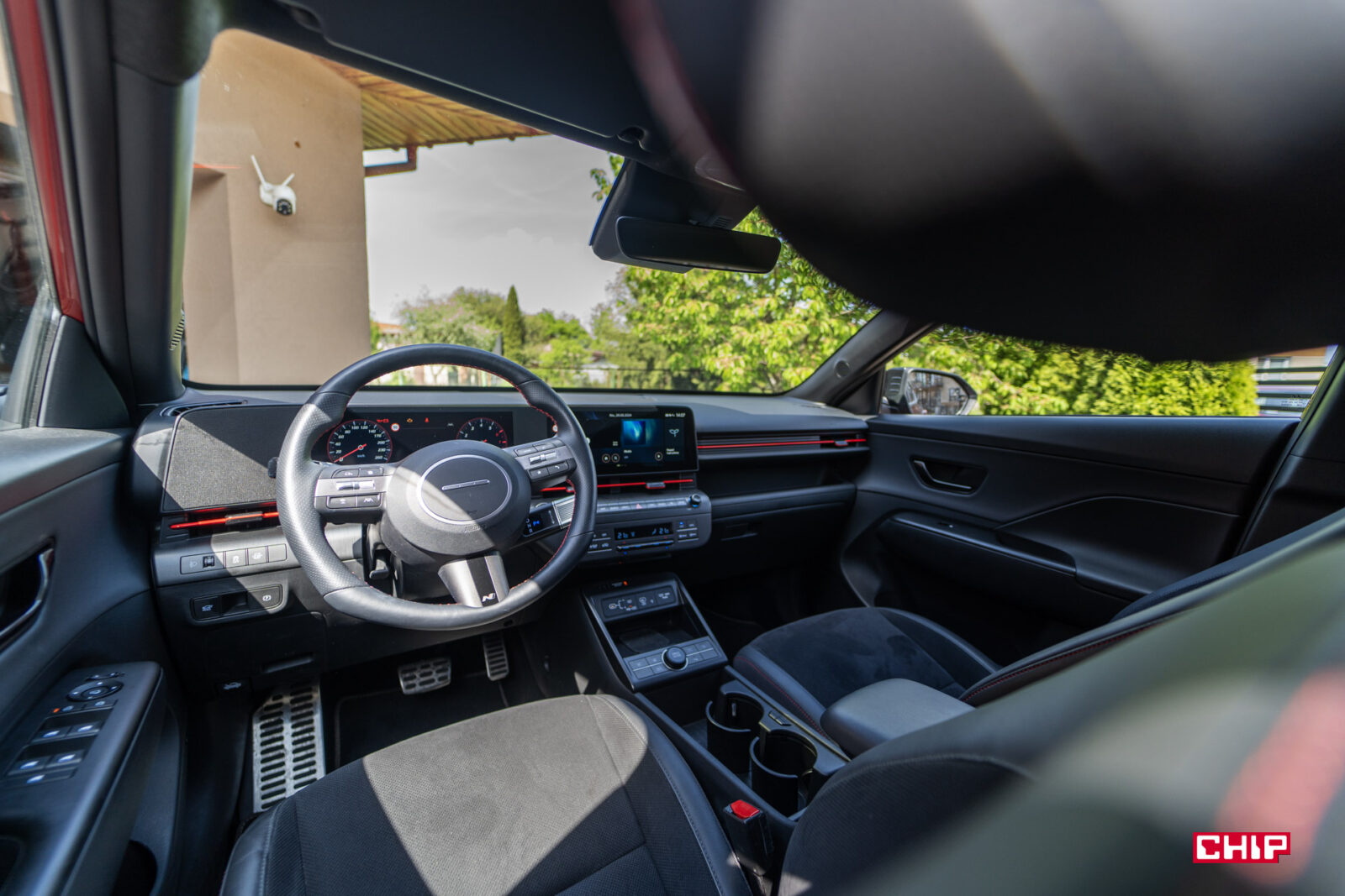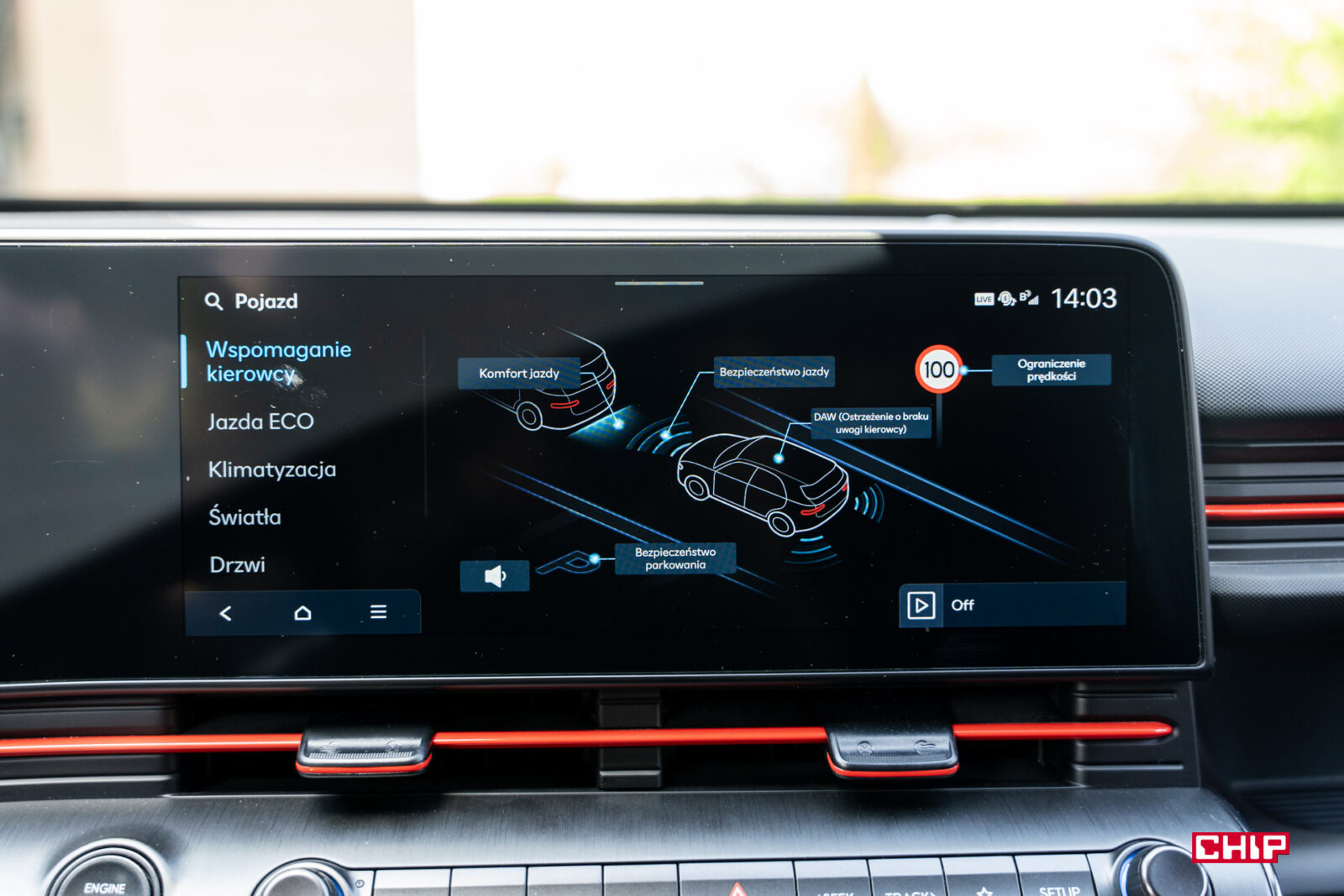 Druga rzecz o której chciałam napisać, to wyposażenie wariantu N Line. Jest tutaj wszystko co w Hyundaiu Konie może być. Nie ma do dokupienia żadnych pakietów, nie ma żadnych wyjątków. Kwestią dopłaty pozostaje jedynie lakier, więc nie będę się rozwodzić nad jej wyposażeniem – dostajecie po prostu wszystko, co w tym wypadku producent ma do zaoferowania. Ciężko jest mi określić, jak bardzo to szanuję.