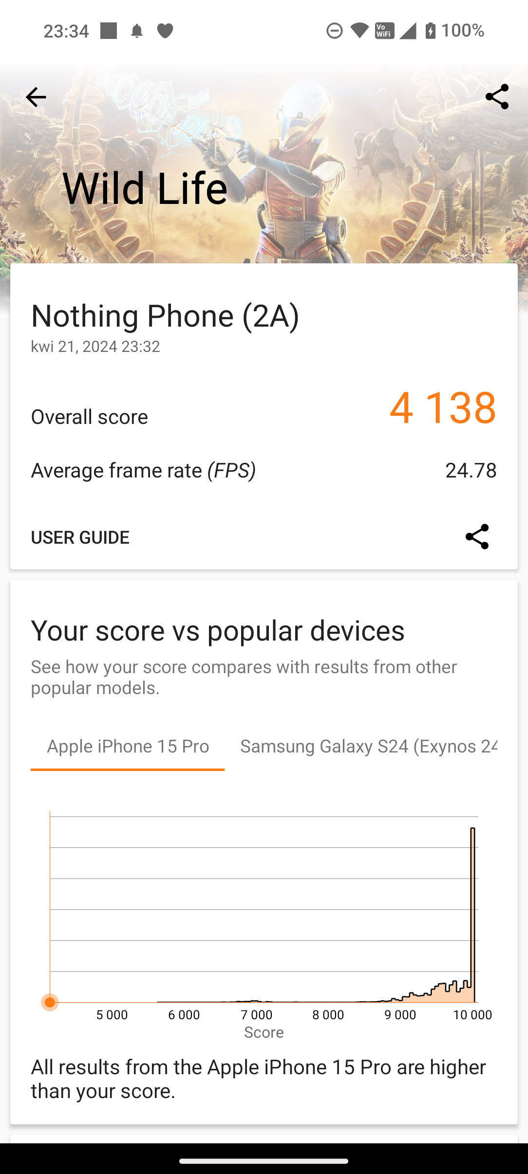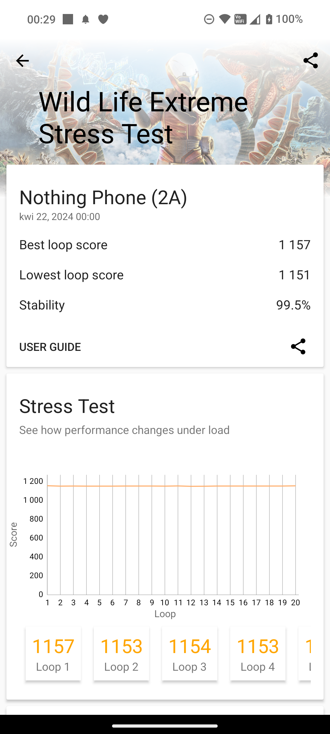 Warto jeszcze zwrócić uwagę na wyniki testu obciążeniowego Wild Life Extreme Stress Test – wynika z nich bowiem, że Nothing Phone (2a) jest całkowicie niepodatny na throttling termiczny, a jednocześnie nawet pod największym obciążeniem jest jedynie letni.