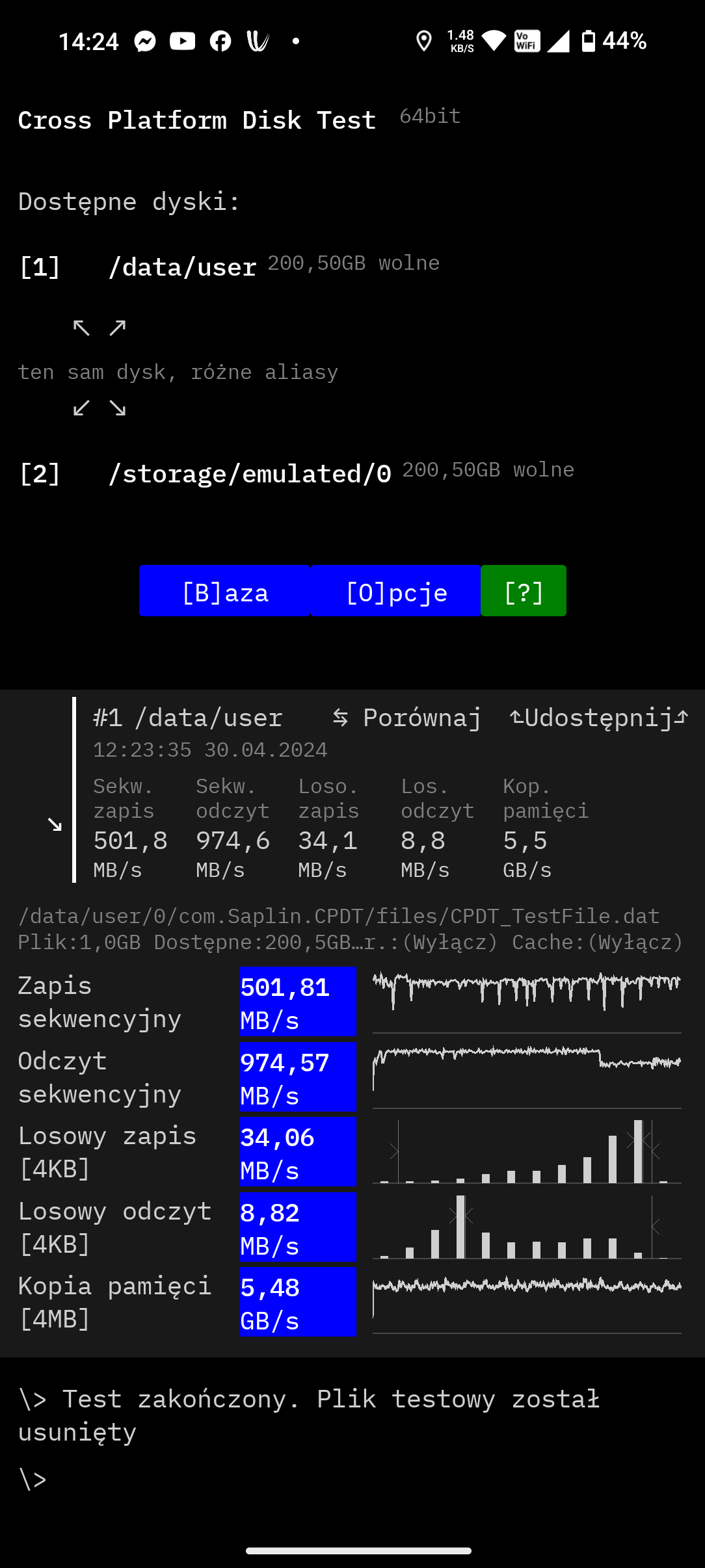 - szybkość ciągłego zapisu danych: 501,81 MB/s,