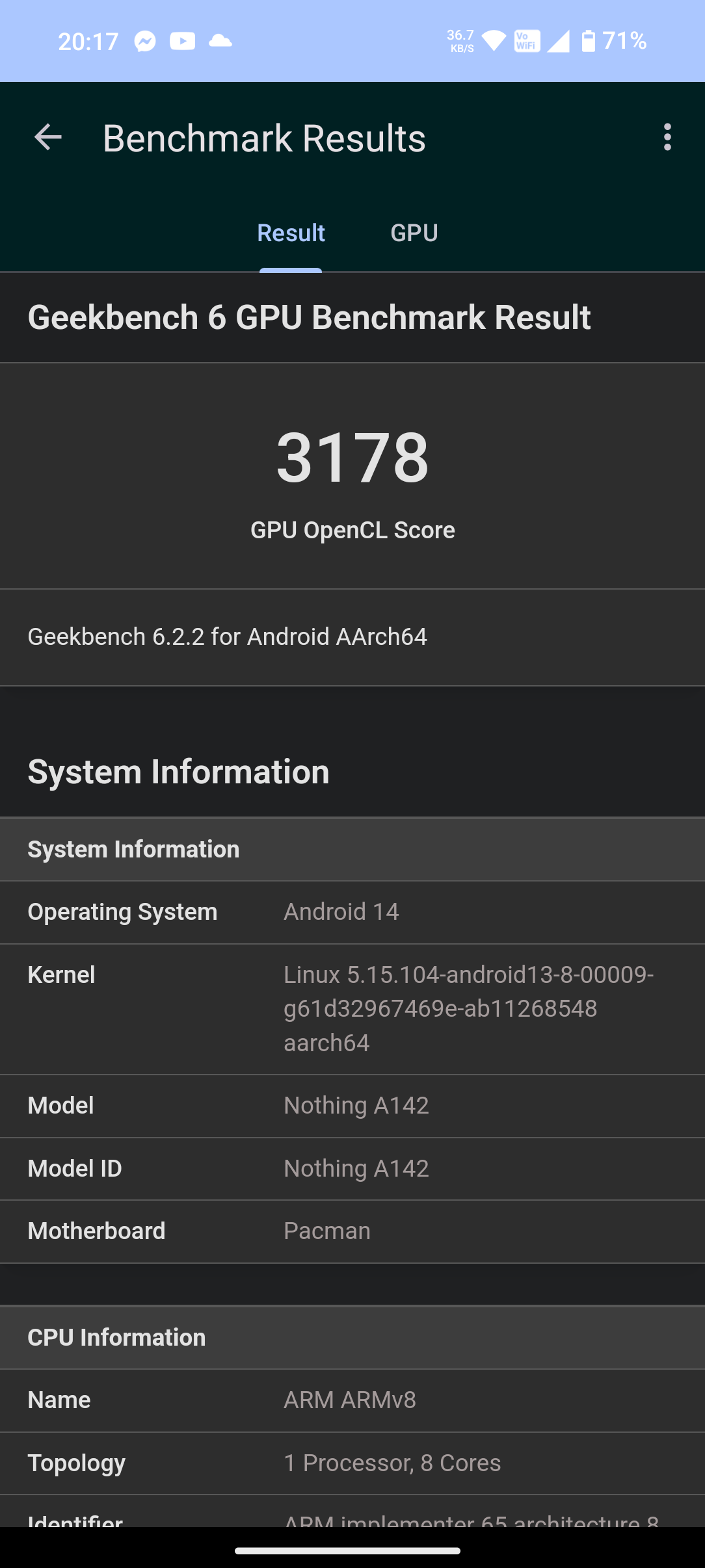 - Geekbench 6 Compute OpenCL: 3178 pkt