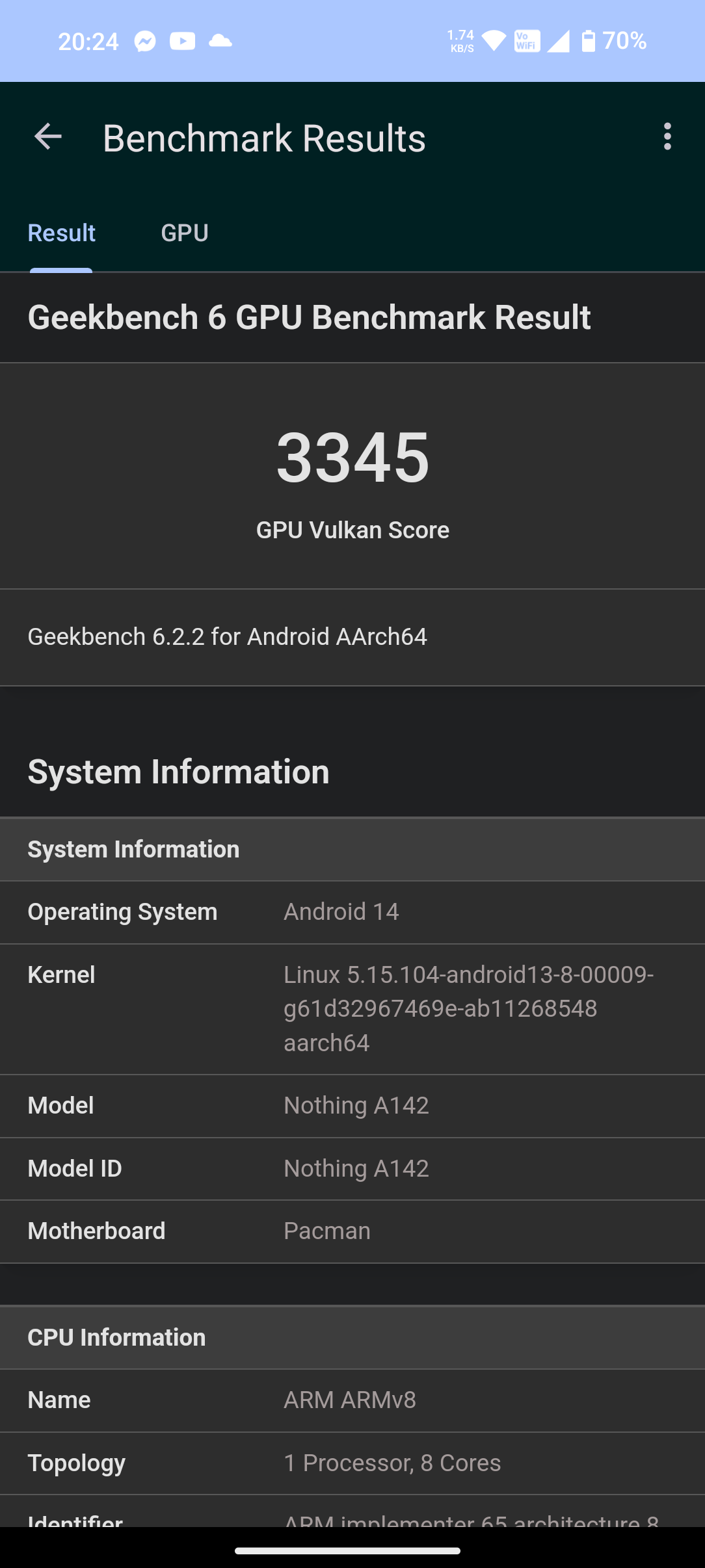 - Geekbench 6 Compute Vulcan: 3345 pkt