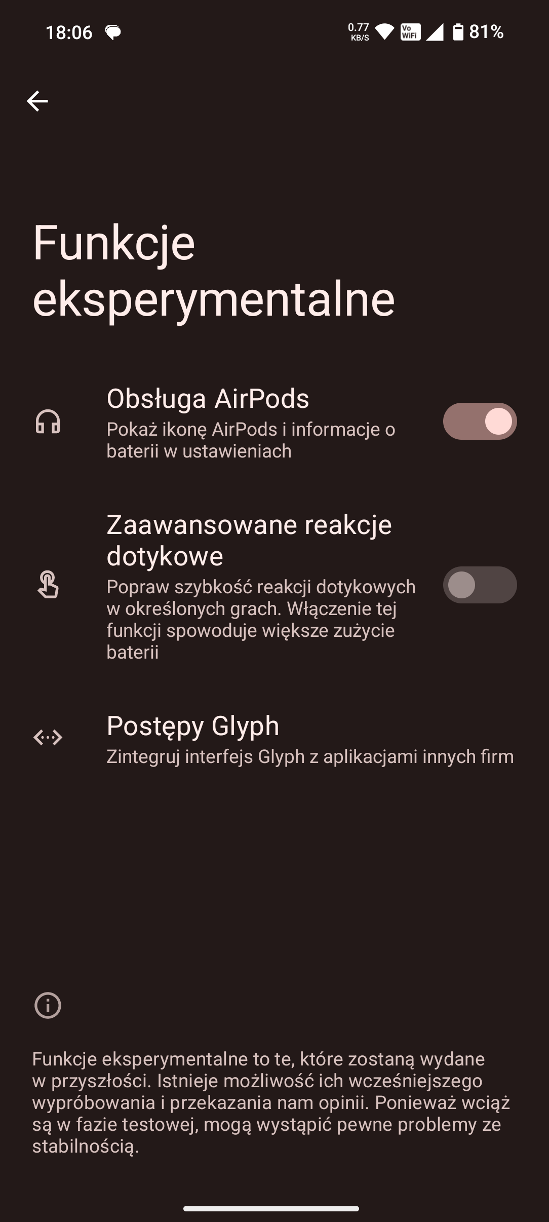 Zupełnie odmiennie Nothing Phone (2a) wypada, jeśli chodzi o współpracę ze słuchawkami bezprzewodowymi Bluetooth, gdyż w systemie znalazły się dwa najpopularniejsze kodeki Hi-Res Audio – LDAC, oferujący rozdzielczość 24 bity i próbkowanie 96 kHz przy bitrate ~900 kbps, oraz LHDC 5.0, który oferuje rozdzielczość 24 bity, ale próbkowanie może sięgnąć aż 196 kHz przy bitrate ~1000 kbps. Do testów audio wykorzystałem słuchawki Philips Fidelio L4 z LDAC i Nothing Ear z LHDC 5.0, w obu przypadkach jakość dźwięku była bardzo dobra.