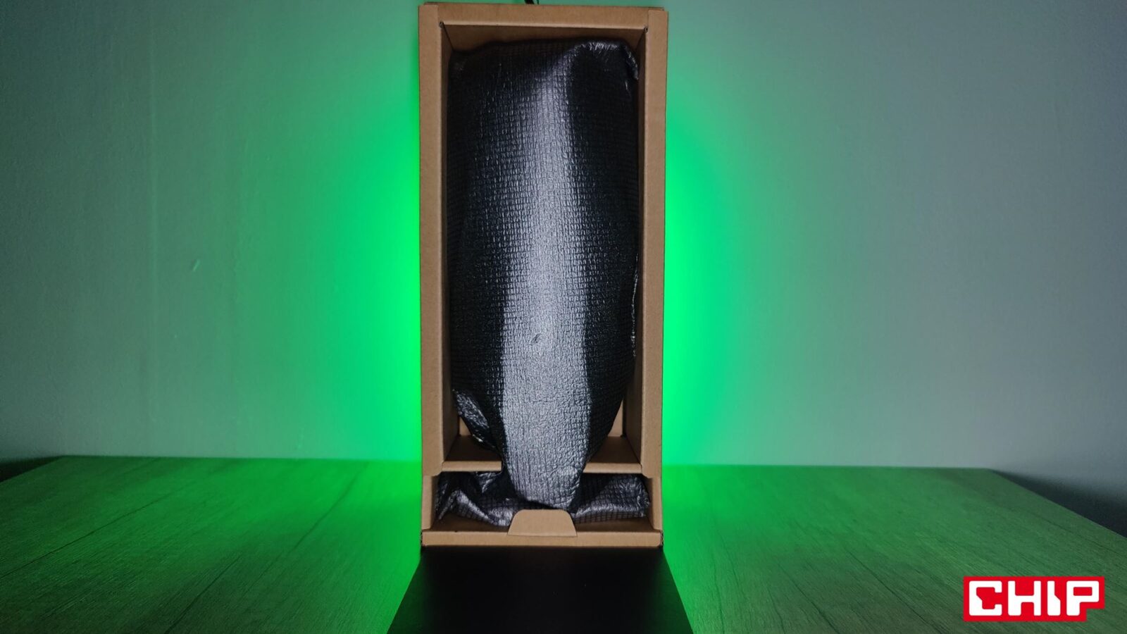 Przygoda z mikrofonem Razer Seiren V3 Chroma rozpoczyna się bardzo typowo, jak na proste mikrofony dla graczy przystało. W pudełku znajdziecie korpus mikrofonu z “widełkami” połączonymi z krótkim wspornikiem, długi sztywny przewód w nylonowym oplocie oraz podstawkę z gumową podstawą, do której musicie wkręcić sam wspornik. Instalacja mikrofonu jest więc ledwie dwuetapowa, bo wystarczy, że połączycie mikrofon z podstawką i wepniecie w niego przewód… i tyle. Możecie cieszyć się nowym mikrofonem.