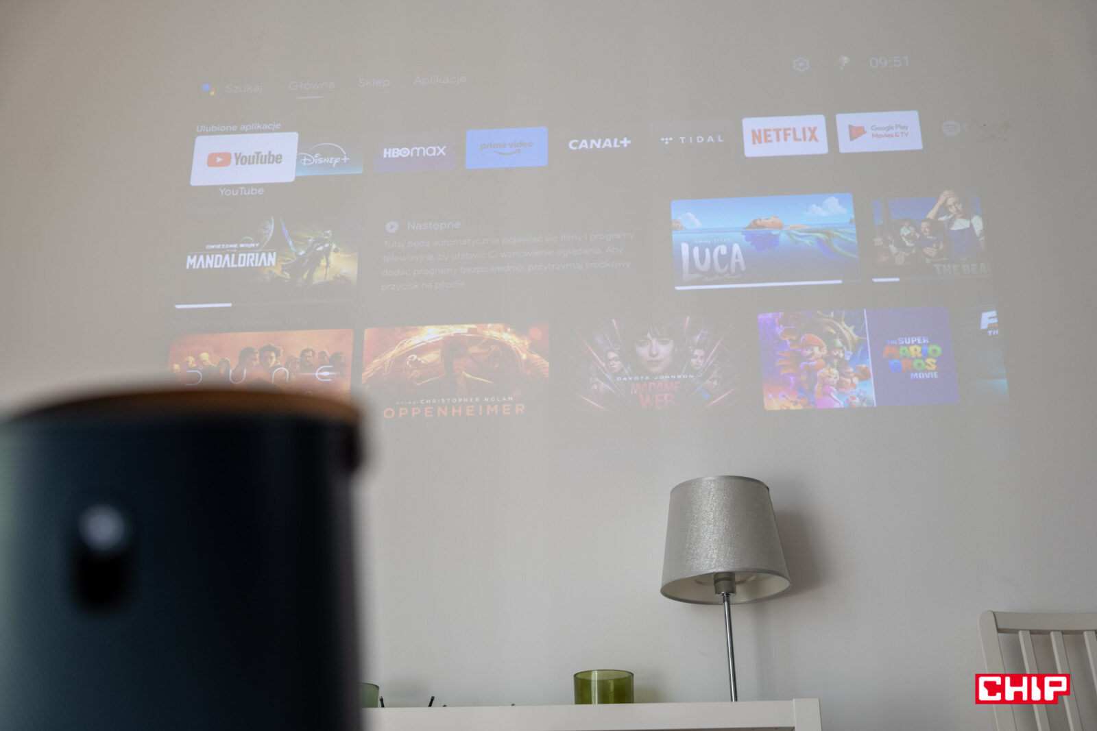 Bardziej niepokoi mnie to, co przystawka czyni z głośnikami. Producent chwalił się 10-watowym systemem Harman-Kardon i faktycznie, gdy uruchomimy dźwięk z innego źródła niż z przystawki Android TV słychać tę moc i donośność. Sęk w tym, że w najczęściej używanym przeze mnie trybie, czyli w ramach systemu smart TV, potencjał głośników zostaje mocno ograniczony. W każdej aplikacji – od Youtube, po streamingi, kończąc na grach, głośniki pracują zauważalnie ciszej. I to na tyle, że nawet w domowym zaciszu traci się komfort, bo praca projektora jest wtedy dość słyszalna.