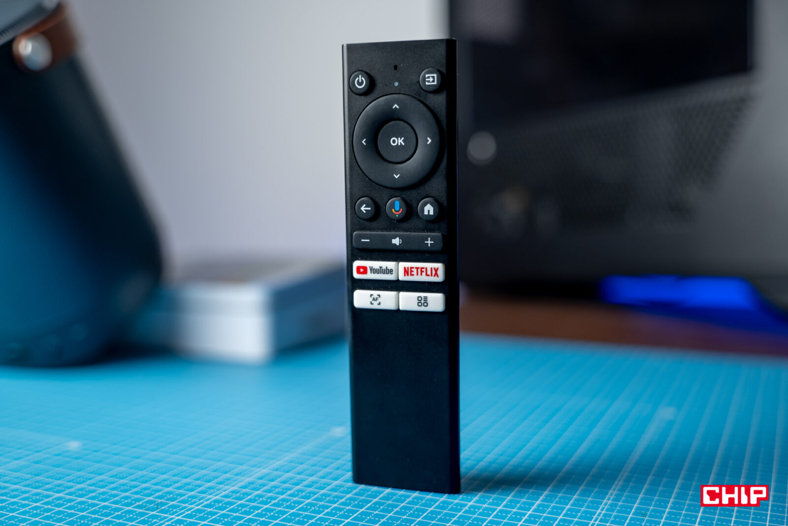 Kilka słów poświęcę także pilotowi. Nie jest to poziom rozwiązań dodawanych do najlepszych telewizorów czy nawet do telewizorów w cenie tego projektora. To bardzo prosty, bardzo plastikowy w odbiorze pilot, w którym klika się raczej bez większej satysfakcji, a gdy trzeba klikać wielokrotnie, sytuacja jest bardzo męcząca. Nie zabrakło skrótów do Netflixa czy Youtube’a.
