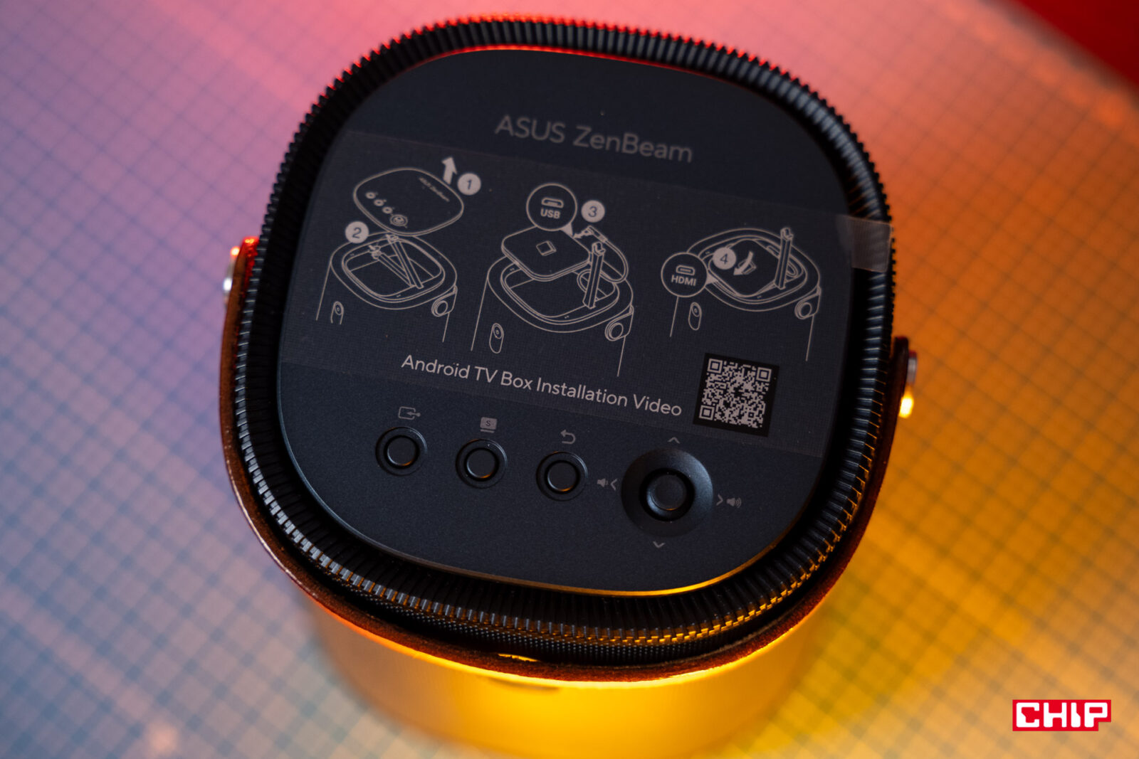 Konstrukcja Zenbeam L2 nie zdradza inżynieryjnego piekiełka, jakie wydarzyło się pod pokrywką na samej górze projektora. Pokrywa łączy się z resztą konstrukcji za pomocą magnesów oraz pinów, dzięki czemu znajdujące się na niej przyciski są funkcjonalne. Jeśli jednak chcemy skorzystać z projektora do obsługi systemu smart TV, musimy polegać na instalacji przystawki Hako TV Box Mini.