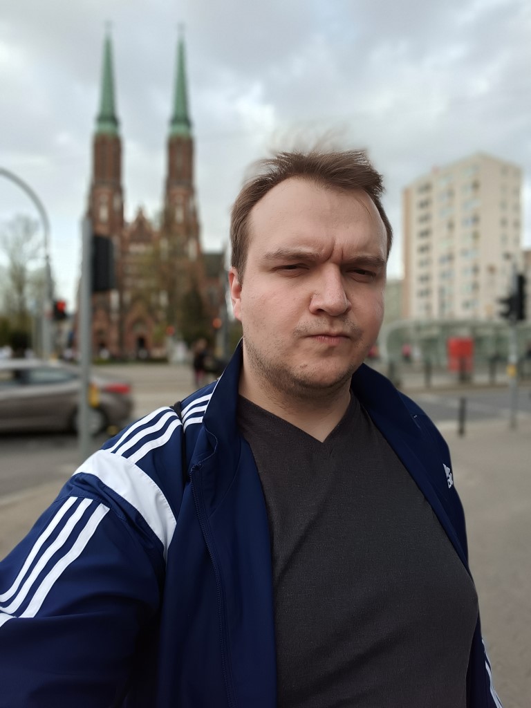W tym wszystkim dobrze wypada przedni aparat – być może dlatego, że w tej dziedzinie od lat nie ma progresu. Zdjęcia mają dobrą kolorystykę, odpowiednią szczegółowość i nie są przepalone w tle – tu HDR spisuje się tak, jak powinien to robić przy głównym aparacie. Jednocześnie nie są to zdjęcia powalające w żadnym z wymienionych wcześniej aspektów – po prostu potrafią dobrze oddać porowatość czy odcień cery. Tryb portretowy działa jednak dość przeciętnie – jeśli macie rozczochrane włosy, niemal na pewno nie odetnie dobrze tła, a i na ubraniach zdarza mu się niepotrzebnie włączyć rozmycie.
