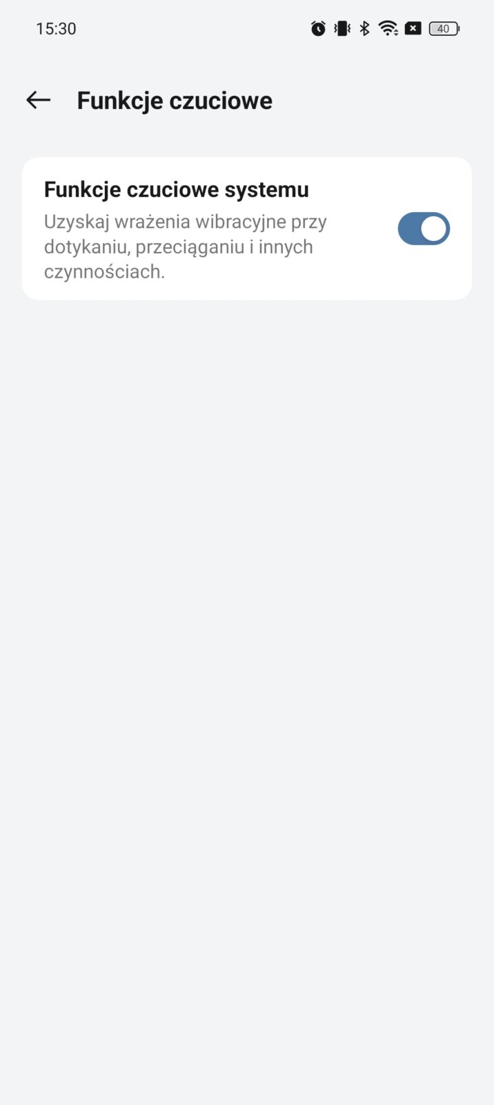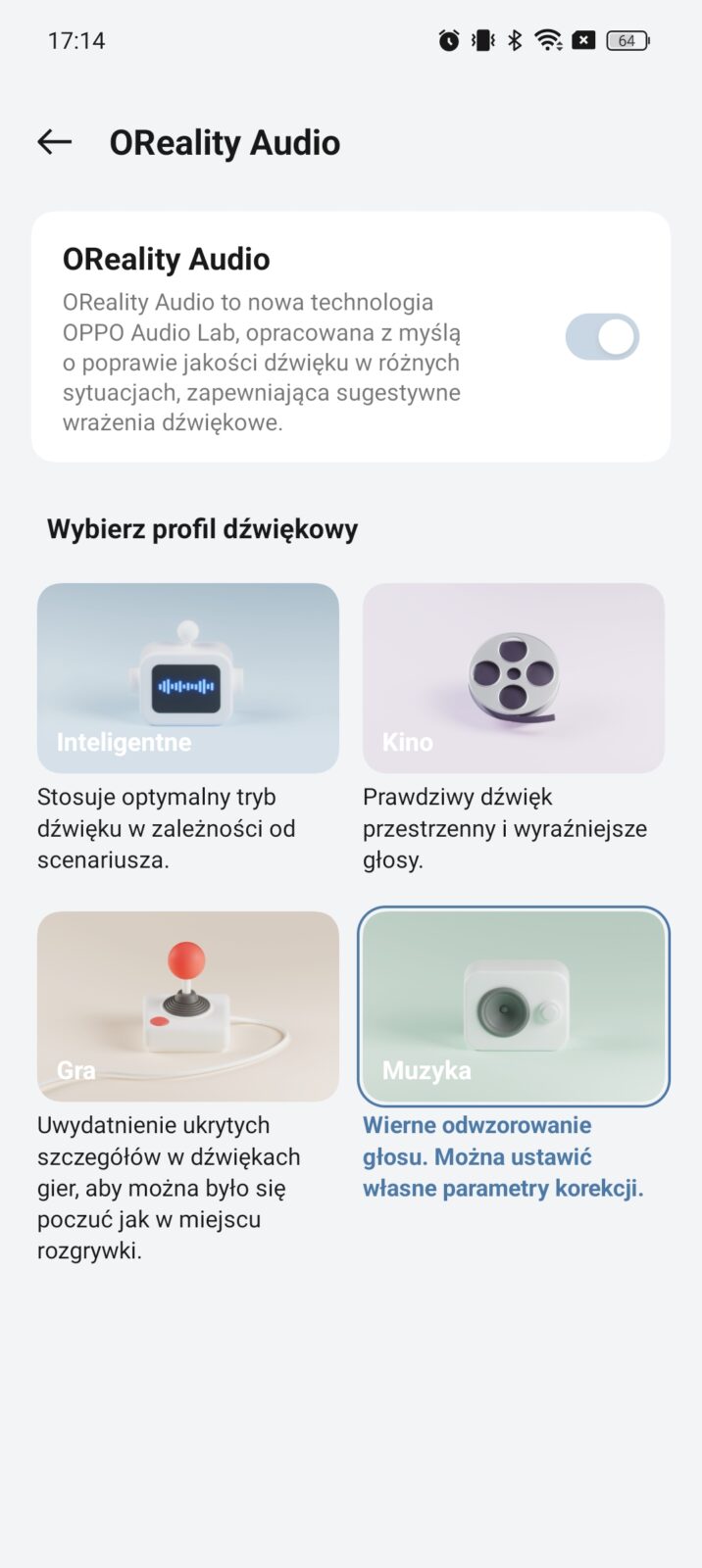 Niby mamy tu oprogramowanie Oreality Audio, które spełnia funkcję korektora dźwięku. Niestety, opcje korekcji graficznej działają tylko w przypadku uruchomienia słuchawek Bluetooth. Zmiany są odczuwalne. Oppo Reno 11 F 5G wydaje mi się ciąć nieco kosztów nie tylko na głośnikach, ale i silniczku wibracyjnym. Nie ma w nim zbyt wiele mocy, a do tego nie jest on precyzyjny i przy mocniejszych wibracjach bardziej skrzeczy niż przyjemnie rezonuje. Oppo zdaje się być tego świadome, bo efektów haptycznych w oprogramowaniu umieściło niewiele.