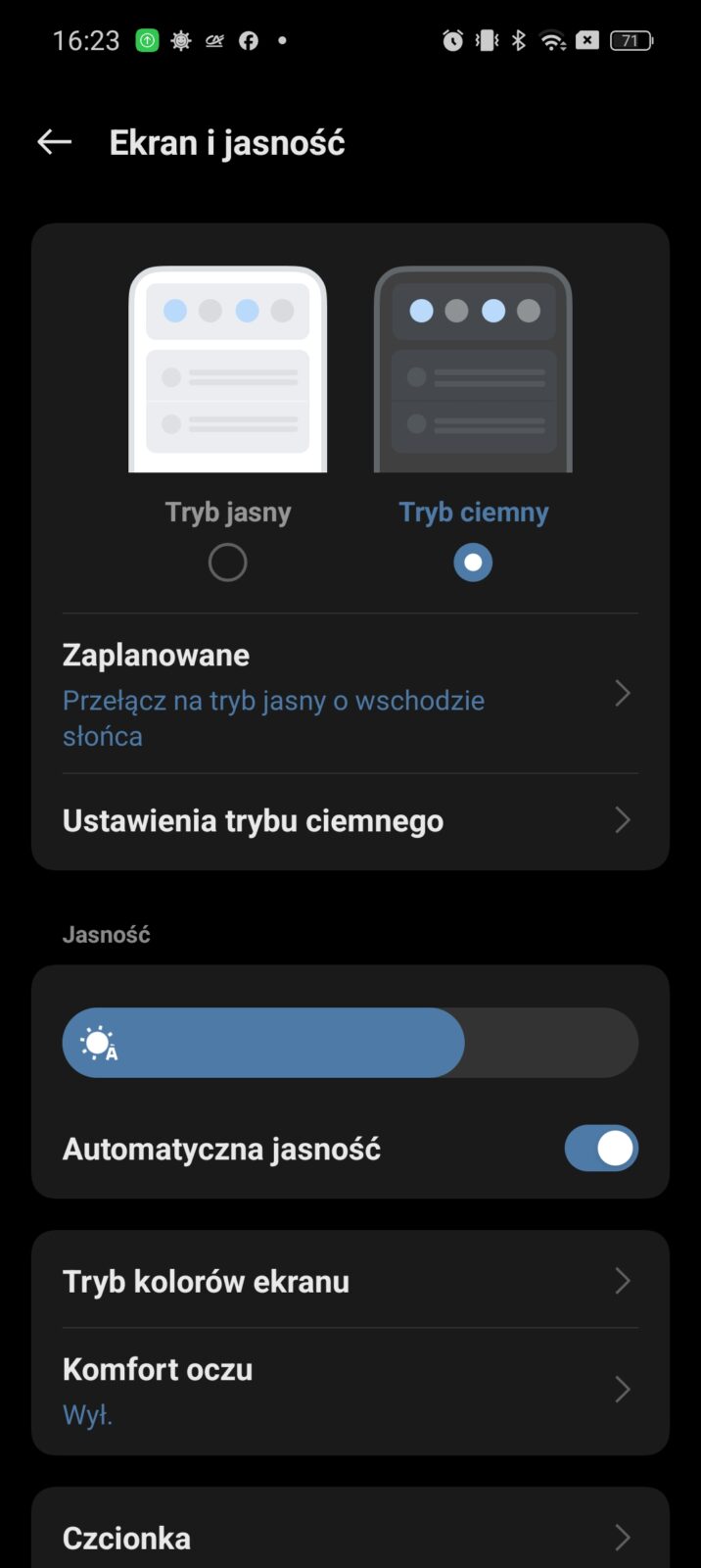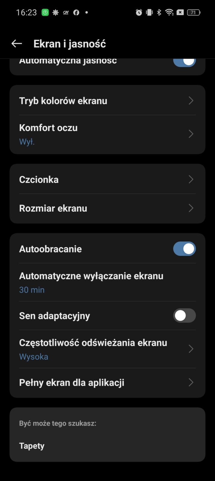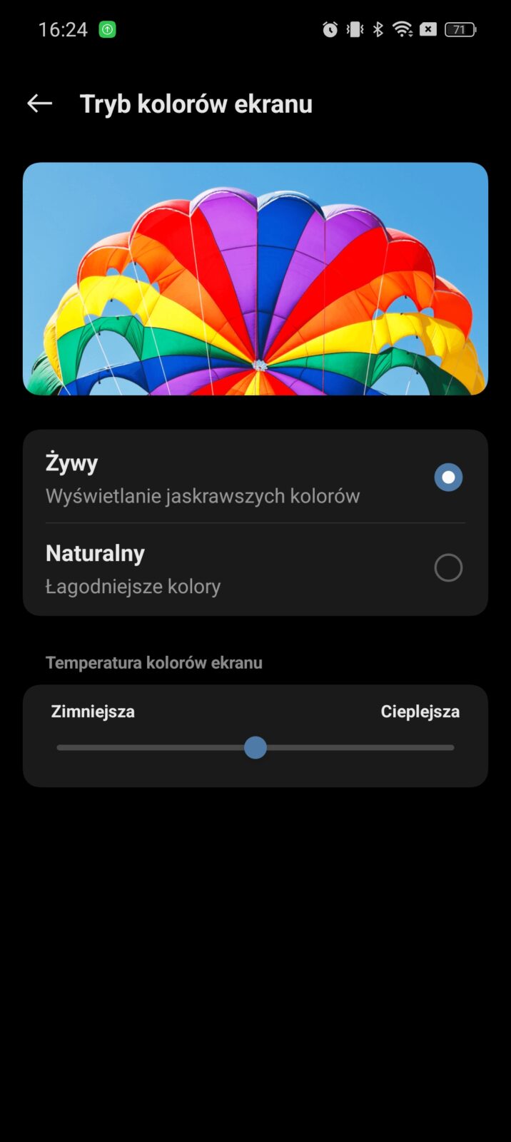 Szkoda, że wiele nie możemy zrobić w kwestii kolorów. Mamy do wyboru albo wyblakłe kolory w trybie naturalnym albo niesamowicie cukierkowe i przesycone barwy w trybie żywym. Żaden tryb nie jest dobrym odzwierciedleniem rzeczywistości. Nie ma tu ustawień poprawiających jakość obrazu przy niższej rozdzielczości czy konwertujących materiały SDR do HDR, co Oppo przecież dodawało do swoich urządzeń. Ekran nie jest szczególnie dobry ani szczególnie zły – po prostu jest duży i na co dzień wyświetla miły w odbiorze obraz (no, może poza dziwną kalibracją barw).