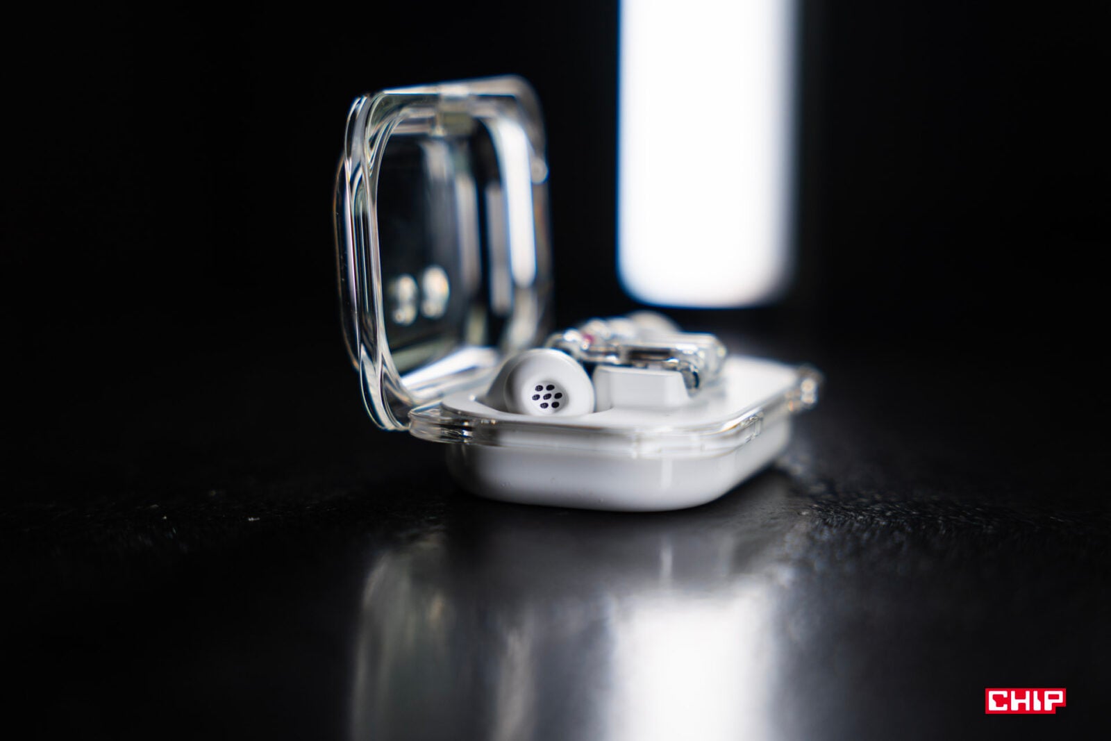 Słuchawki są twarde, a jedyna miękka część to oczywiście końcówki, które wkładamy do ucha. Przyznam szczerze, że po dłuższym czasie (ponad 2 godziny) stają się nieco niewygodne. Leżąc w łóżku również należy uważać – jeśli kładzie się głowę na boku, wówczas dociska się je, co może być niekomfortowe. Nieprzyjemnie wbijają się w ucho. Nothing ear (a) mogą nam posłużyć do rozmów telefonicznych – jednak należy liczyć się z tym, że głos osoby mówiącej do nas będzie nieco zniekształcony i brzmi z dziwnym pogłosem. Nie ma natomiast problemów ze słyszeniem, gdy to my mówimy.