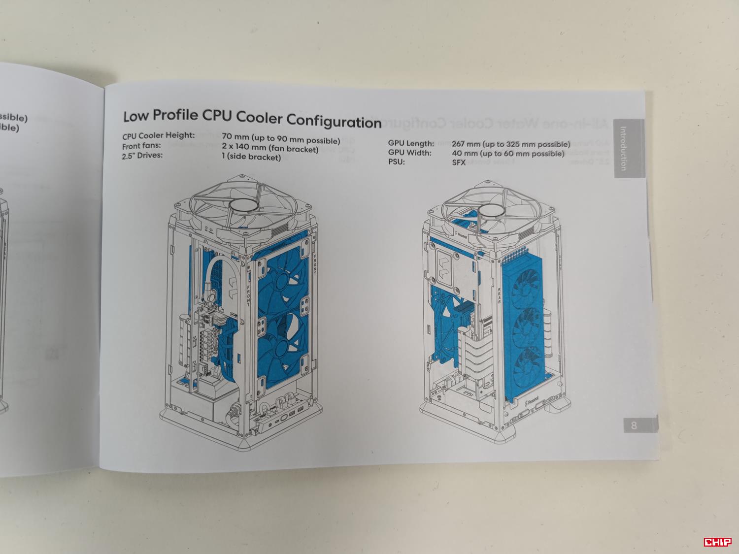 Wnętrze może nie wygląda na bardzo pojemne, ale możecie w nim zbudować naprawdę wydajną maszynę. Przy wyborze podzespołów musicie jednak uważać na zależności pomiędzy różnymi częściami. Chyba najlepiej pokazują je trzy zdjęcia z instrukcji: