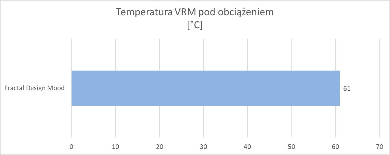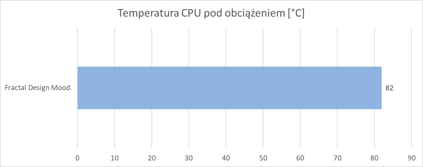 Temperatury są naprawdę niezłe. Mimo małych rozmiarów wentylacja jest naprawdę zachowana i przy zastosowanym sprzęcie nie ma żadnych obaw o jego przegrzewanie się. Karta graficzna ma dobre wyniki, podobnie jak procesor. Również sam dysk czy sekcja zasilania nie notują dziwnie wysokich temperatur. Spokojnie więc możecie zbudować Fractal Design Mood nawet całkiem mocną maszynę.