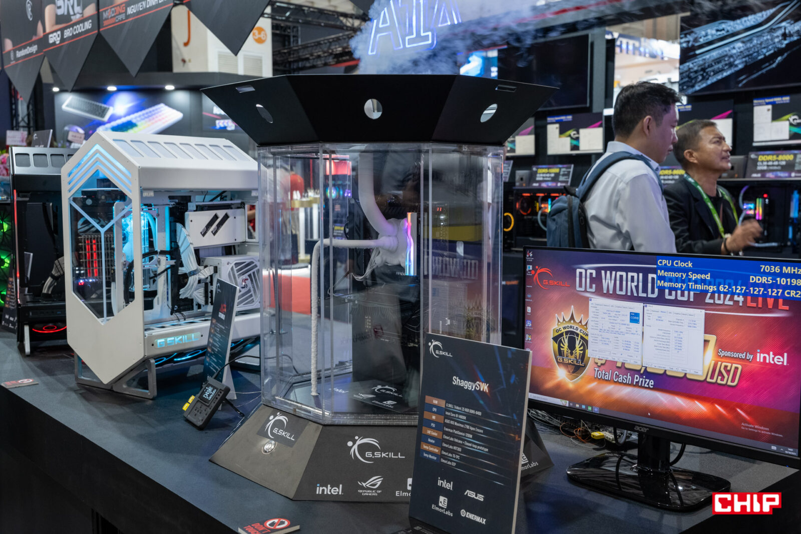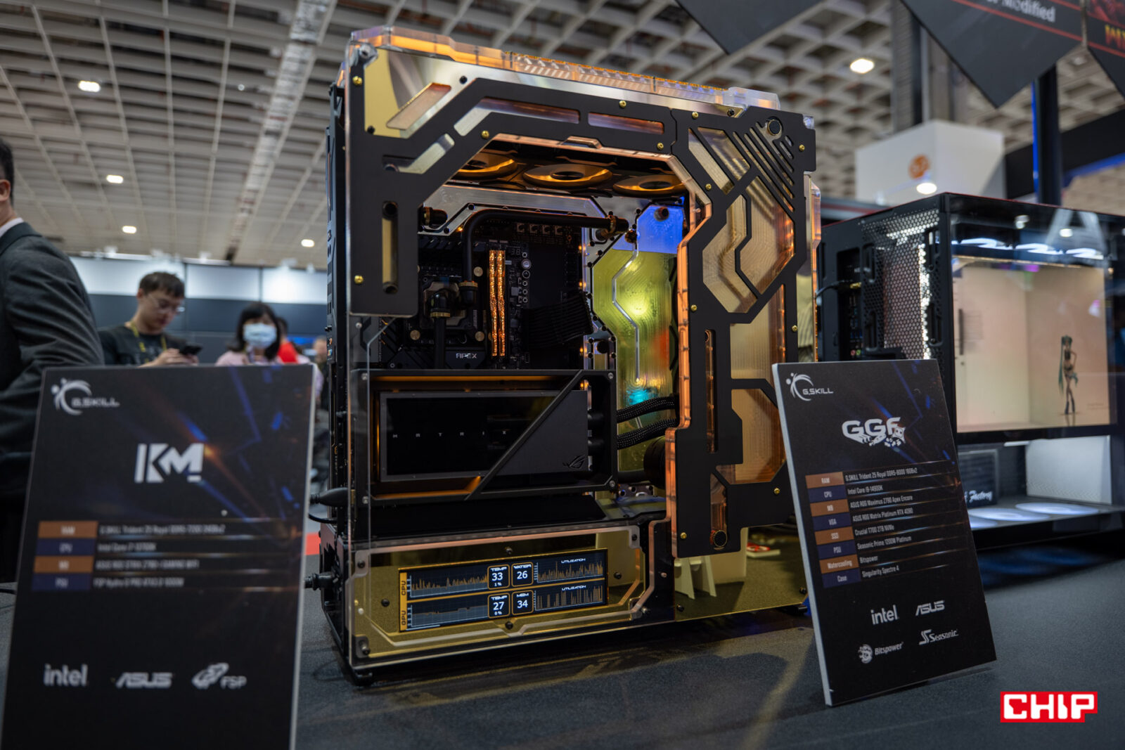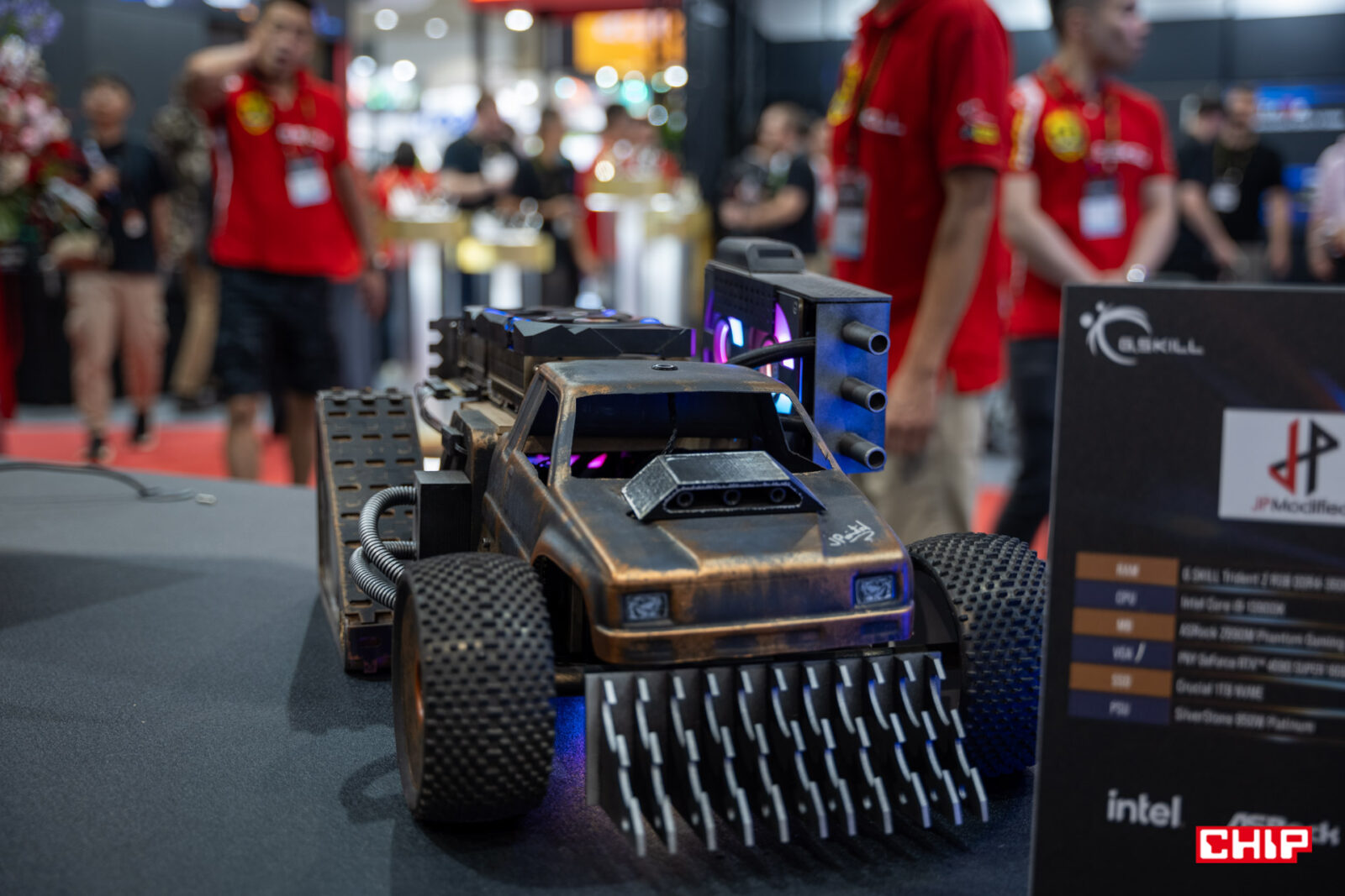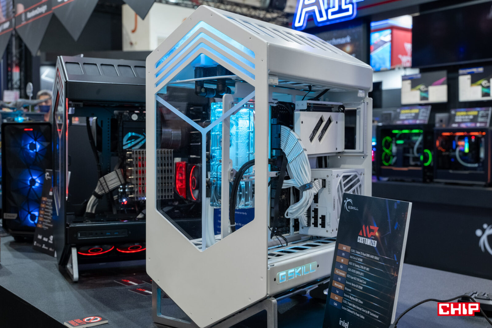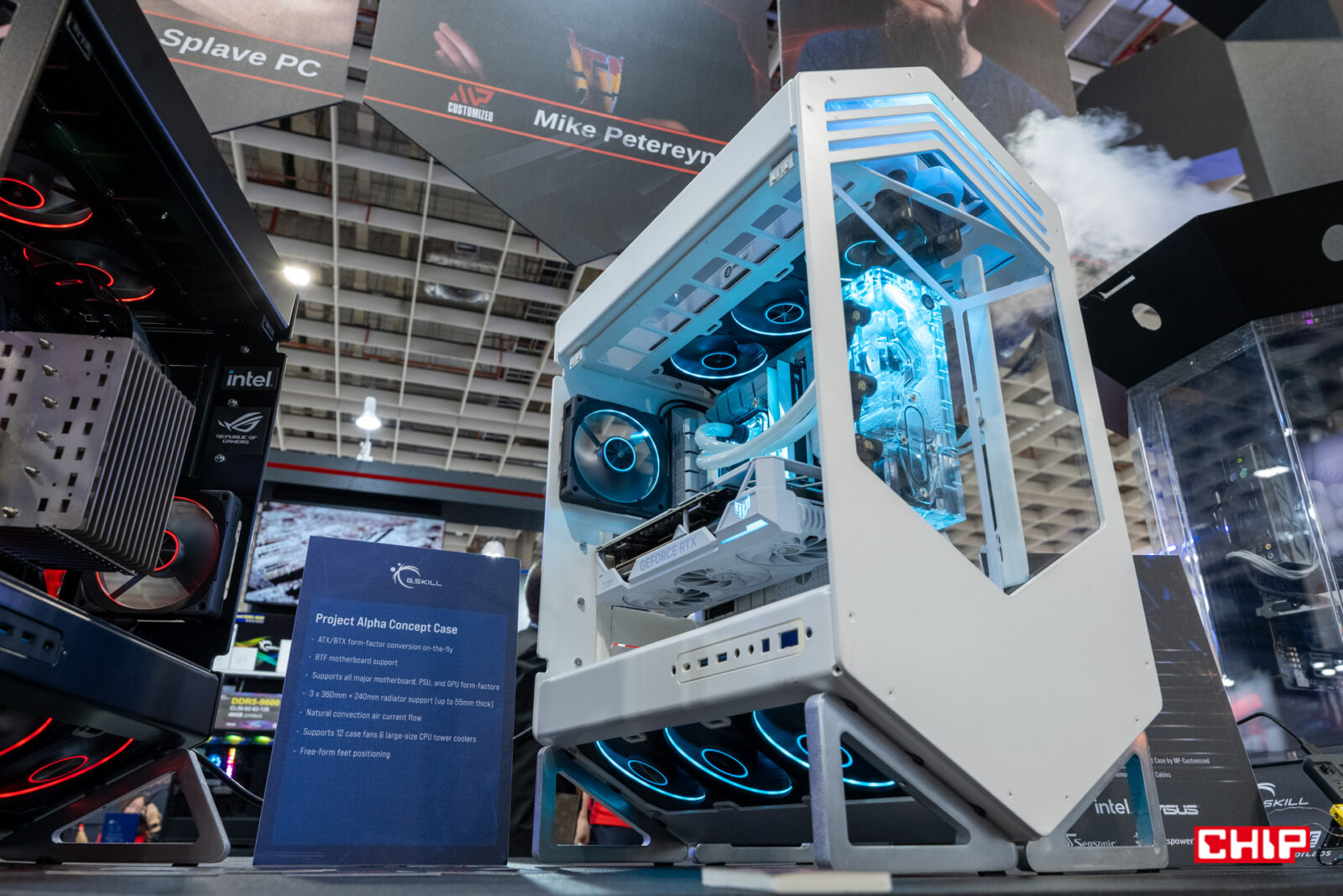 Obudowy stanowiły istotną część całej ekspozycji, jaką G.SKILL postanowiło pokazać, a uwagę zwracały te, przy tworzeniu których G.SKILL dał wykazać się popularnym twórcom niecodziennych konstrukcji. Zaproszenie zaowocowało prezentacją 12 jednostek, które zaskoczyły mnie kształtem i rozwiązaniami, a nawet jeśli ich kształt wydawał się dość typowy, to oferowały inne, nieoczywiste rozwiązania, jak chociażby obecność półprzezroczystego ekranu czy niecodzienne chłodzenie. Spójrzcie na konstrukcje z G.SKILL Extreme Mod Stage 2024 i oceńcie sami.