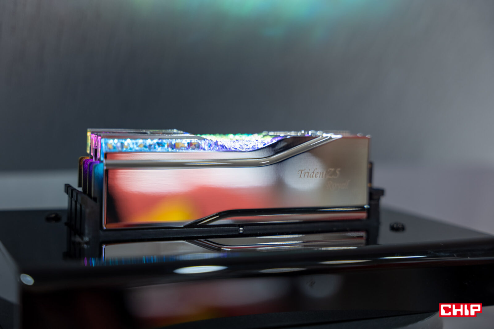 W pamięciach Trident Z5 Royal postawiono na mocno błyszczące złote lub srebrne wykończenie, a do tego dodano osłonę diod RGB wzorowaną na diamencie koronnym, z charakterystyczną dyfuzją światła. Daje to poczucie obcowania z czymś jeszcze lepszym od matowej odsłony wielokolorowego podświetlenia i przyjemnie rozświetla obudowę. Proces galwanizacji pozwolił na umieszczenie radiatorów wycinanych CNC z aluminium tak, by odprowadzanie światła nie sprawiało problemu, a jednocześnie by mogły zachować unikatowy kształt.