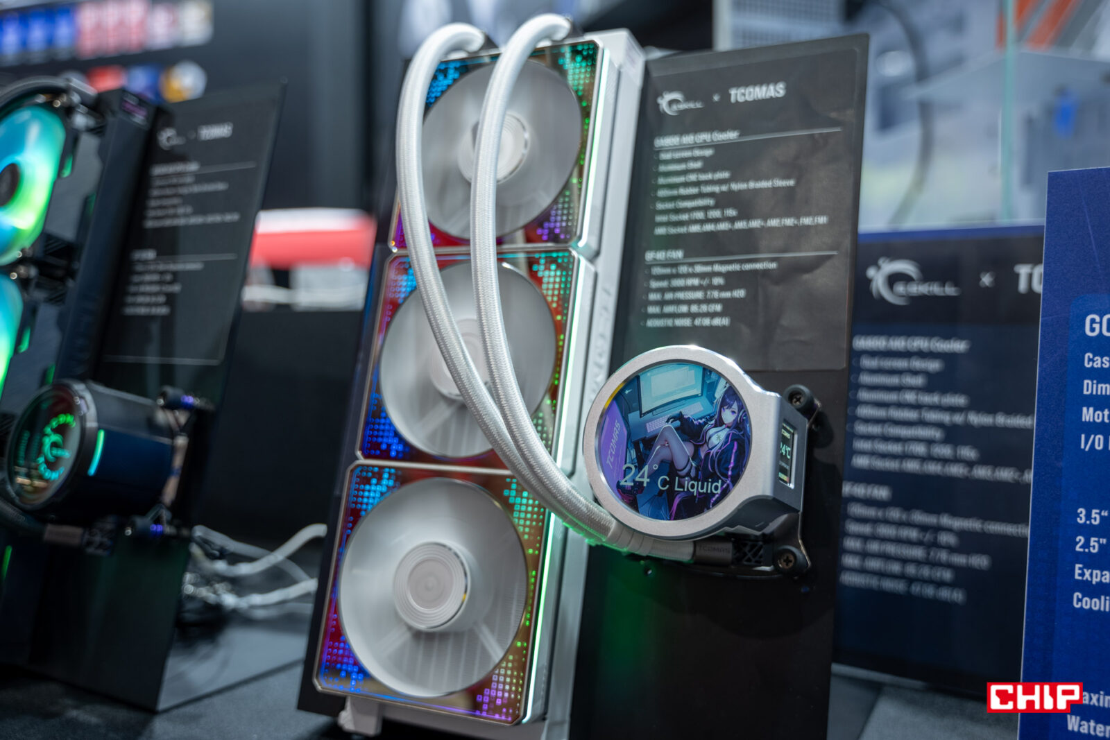 G.SKILL w Polsce jest znany w zasadzie tylko z kości pamięci, natomiast na innych rynkach firma odważnie tworzy nowe sprzęty w innych kategoriach. Z pewnością na uwagę zasługują jej systemy chłodzenia, w których implementuje nawiew odczepiany magnetycznie. W razie problemów z pracą pojedynczego wentylatora nie trzeba wymieniać całości, a jedynie wadliwy element, który w ten sposób łatwiej też poddać naprawie. Oczywiście nie brakuje tu też nutki ekstrawagancji w postaci ekranu, który może pokazywać różne parametry po połączeniu go z oprogramowaniem. Firma implementuje też autorskie systemy chłodzenia i tworzy obudowy oraz akcesoria do gamingu, jak klawiatury. Kto wie, może kiedyś rozszerzy swoją ofertę na Polskę?