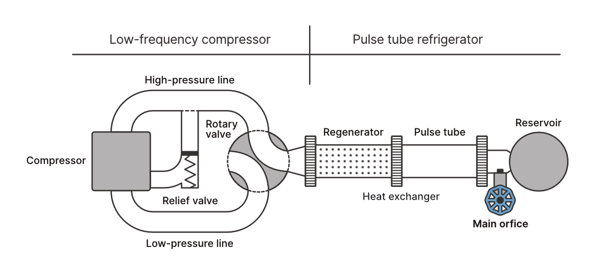 PTR wykorzystuje gaz, który jest sprężany, a gdy ten się rozpręża, odprowadza ciepło. Jednak zamiast freonu lub izobutanu, PTR operuje helem – co pozwala mu chłodzić rzeczy do teoretycznych granic fizyki. Działa, ale osiągnięcie pożądanego chłodu zajmuje kilka dni i wymaga dużo energii.